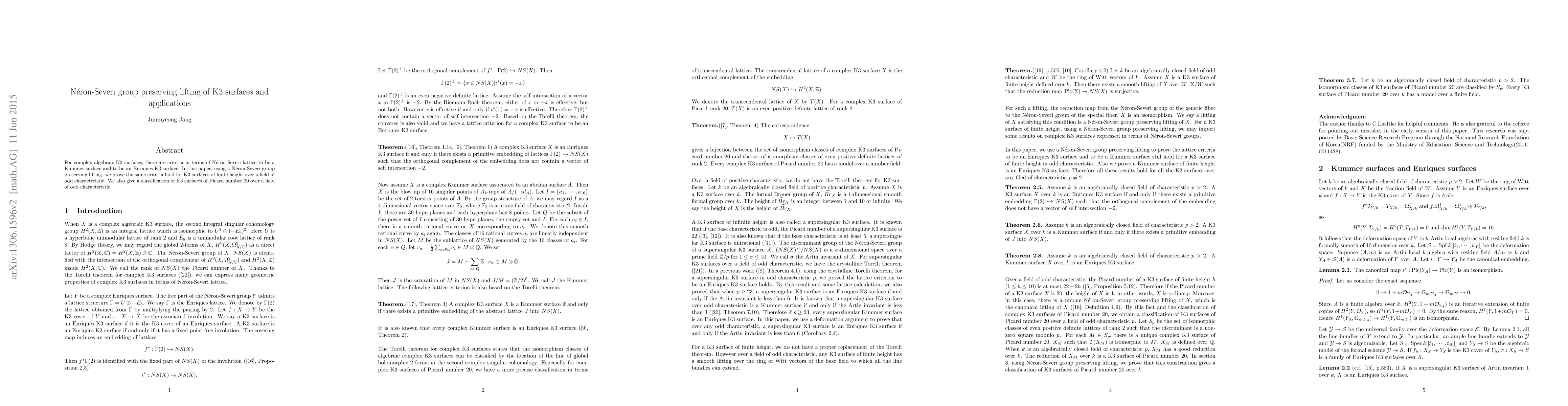 This paper establishes a lifting criterion for K3 surfaces over fields of odd characteristic that preserves the Neron-Severi group, demonstrating that such surfaces can be classified as Enriques K3 surfaces or regular K3 surfaces based on their Neron-Severi lattice, and classifies K3 surfaces with Picard rank 20 over odd characteristic.