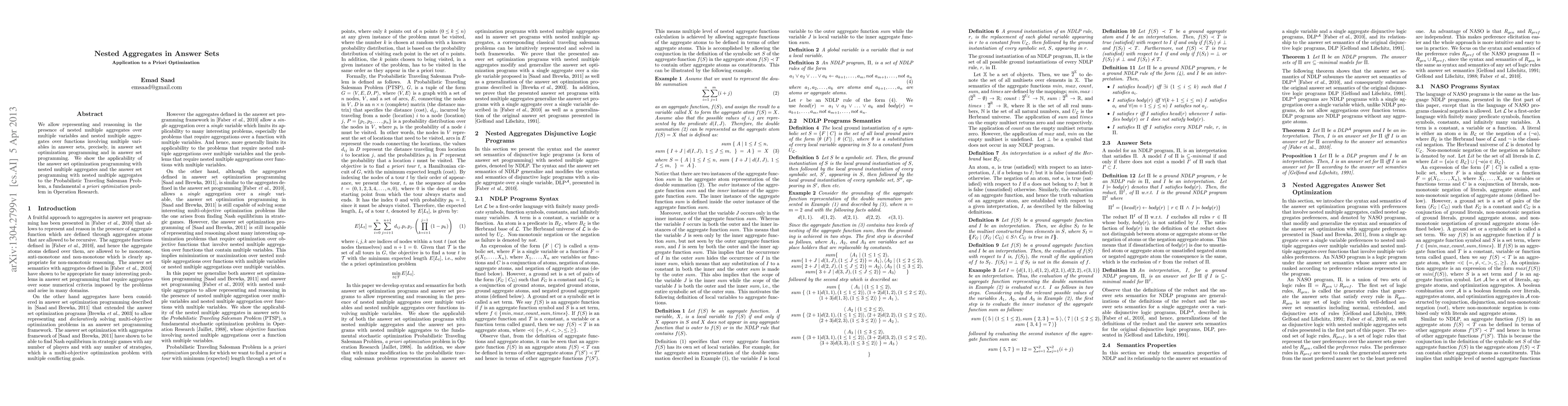 This paper introduces nested multiple aggregates in answer set optimization and programming, demonstrating their application to the Probabilistic Traveling Salesman Problem, a key a priori optimization issue in Operational Research. The approach enhances the representation and reasoning capabilities in complex optimization scenarios.