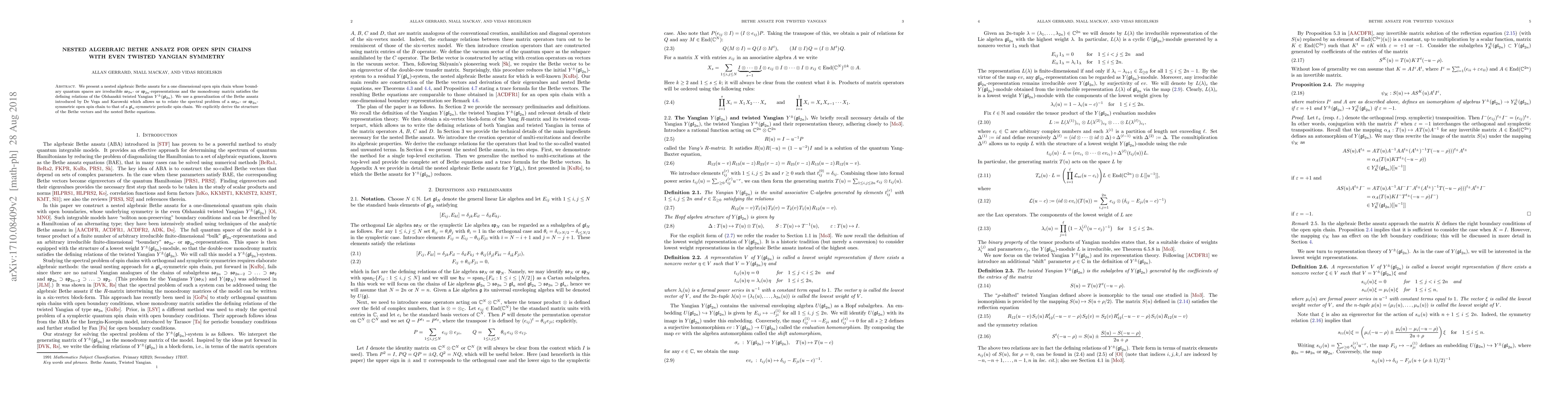 This paper introduces a nested algebraic Bethe ansatz for open spin chains with $\mathfrak{so}_{2n}$ or $\mathfrak{sp}_{2n}$ boundary representations, showing how it relates to $\mathfrak{gl}_{n}$-symmetric periodic spin chains via the Olshanskii twisted Yangian symmetry. The study derives the structure of Bethe vectors and nested Bethe equations.
