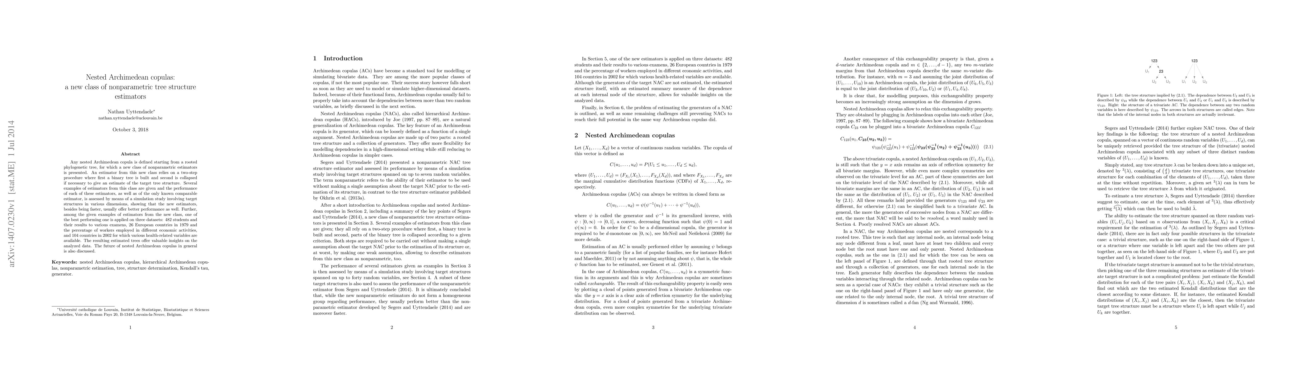 Any nested Archimedean copula is defined starting from a rooted phylogenetic tree, for which a new class of nonparametric estimators is presented. An estimator from this new class relies on a two-step procedure where first a binary tree is built and second is collapsed if necessary to give an estimate of the target tree structure. Several examples of estimators from this class are given and the performance of each of these estimators, as well as of the only known comparable estimator, is assessed by means of a simulation study involving target structures in various dimensions, showing that the new estimators, besides being faster, usually offer better performance as well. Further, among the given examples of estimators from the new class, one of the best performing one is applied on three datasets: 482 students and their results to various examens, 26 European countries in 1979 and the percentage of workers employed in different economic activities, and 104 countries in 2002 for which various health-related variables are available. The resulting estimated trees offer valuable insights on the analyzed data. The future of nested Archimedean copulas in general is also discussed.