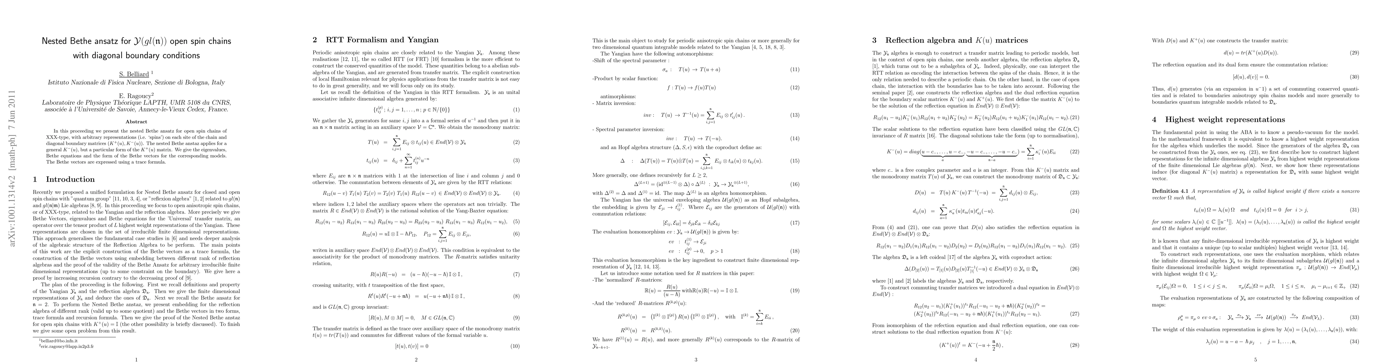In this proceeding we present the nested Bethe ansatz for open spin chains of XXX-type, with arbitrary representations (i.e. `spins') on each site of the chain and diagonal boundary matrices $(K^+(u),K^-(u))$. The nested Bethe anstaz applies for a general $K^-(u)$, but a particular form of the $K^+(u)$ matrix. We give the eigenvalues, Bethe equations and the form of the Bethe vectors for the corresponding models. The Bethe vectors are expressed using a trace formula.