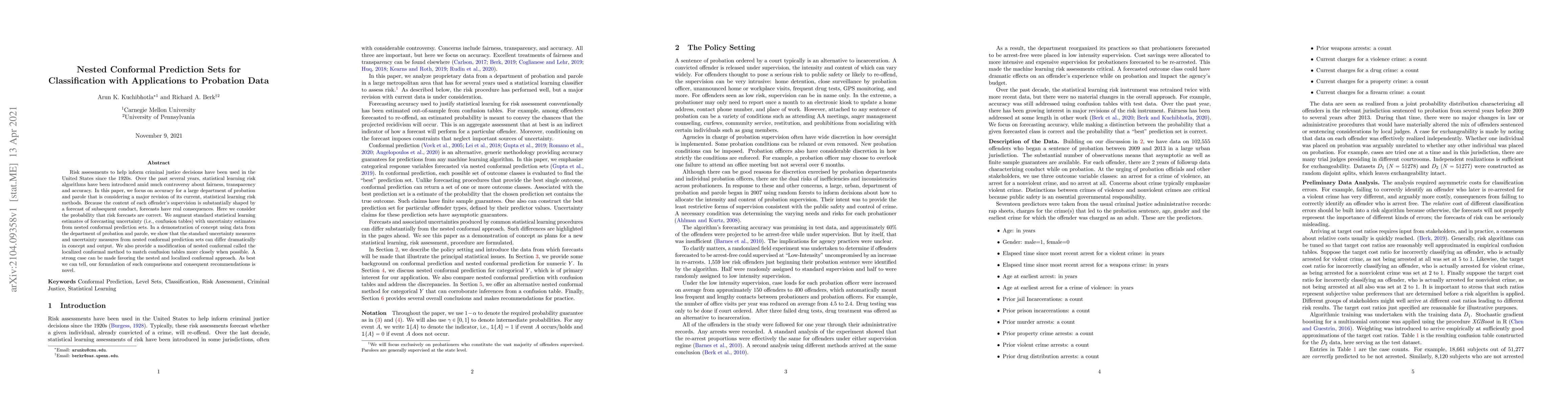 Risk assessments to help inform criminal justice decisions have been used in the United States since the 1920s. Over the past several years, statistical learning risk algorithms have been introduced amid much controversy about fairness, transparency and accuracy. In this paper, we focus on accuracy for a large department of probation and parole that is considering a major revision of its current, statistical learning risk methods. Because the content of each offender's supervision is substantially shaped by a forecast of subsequent conduct, forecasts have real consequences. Here we consider the probability that risk forecasts are correct. We augment standard statistical learning estimates of forecasting uncertainty (i.e., confusion tables) with uncertainty estimates from nested conformal prediction sets. In a demonstration of concept using data from the department of probation and parole, we show that the standard uncertainty measures and uncertainty measures from nested conformal prediction sets can differ dramatically in concept and output. We also provide a modification of nested conformal called the localized conformal method to match confusion tables more closely when possible. A strong case can be made favoring the nested and localized conformal approach. As best we can tell, our formulation of such comparisons and consequent recommendations is novel.