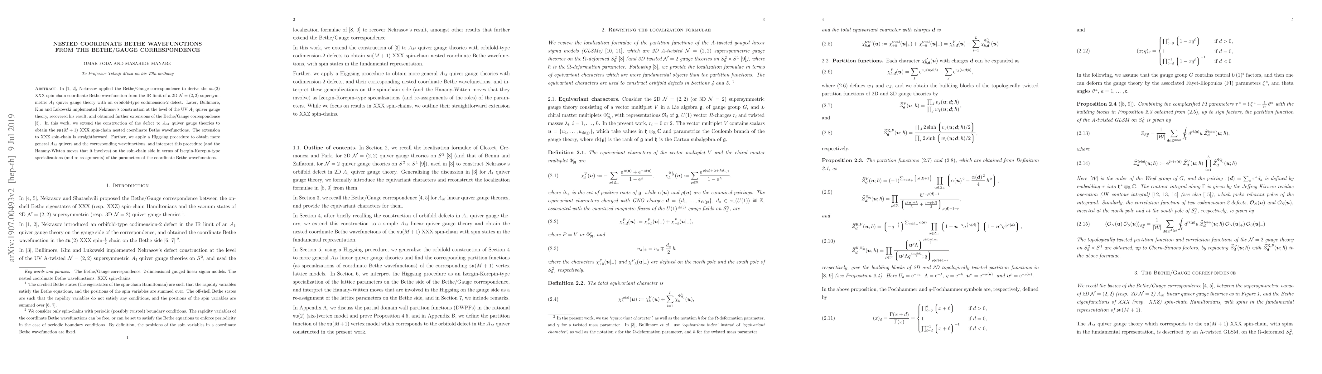 In [1, 2], Nekrasov applied the Bethe/gauge correspondence to derive the $\mathfrak{su}\, (2)$ XXX spin-chain coordinate Bethe wavefunction from the IR limit of a 2D $\mathcal{N}=(2, 2)$ supersymmetric $A_1$ quiver gauge theory with an orbifold-type codimension-2 defect. Later, Bullimore, Kim and Lukowski implemented Nekrasov's construction at the level of the UV $A_1$ quiver gauge theory, recovered his result, and obtained further extensions of the Bethe/gauge correspondence [3]. In this work, we extend the construction of the defect to $A_M$ quiver gauge theories to obtain the $\mathfrak{su} \, ( M + 1 )$ XXX spin-chain nested coordinate Bethe wavefunctions. The extension to XXZ spin-chain is straightforward. Further, we apply a Higgsing procedure to obtain more general $A_M$ quivers and the corresponding wavefunctions, and interpret this procedure (and the Hanany-Witten moves that it involves) on the spin-chain side in terms of Izergin-Korepin-type specializations (and re-assignments) of the parameters of the coordinate Bethe wavefunctions.