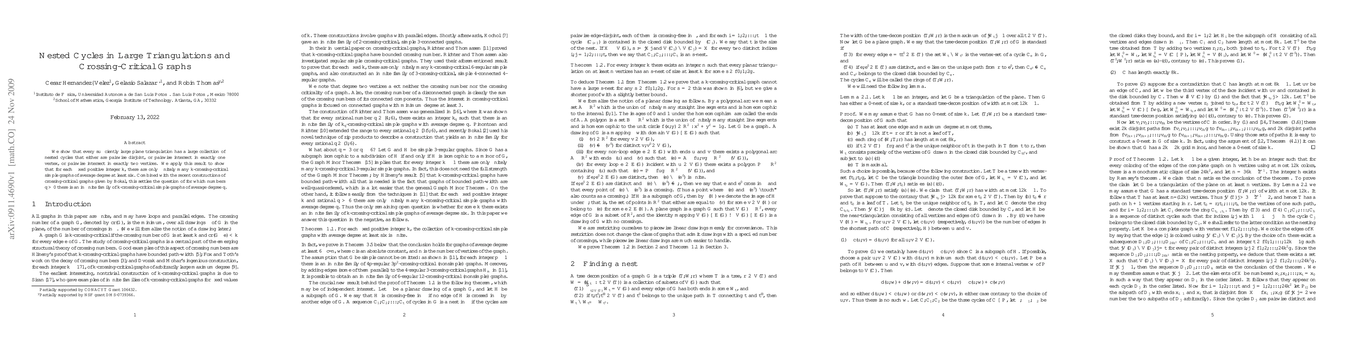 This paper demonstrates that large plane triangulations contain extensive collections of nested cycles with specific intersection properties. It also concludes that for any fixed $k$, there are only finitely many $k$-crossing-critical simple graphs with an average degree of at least six, resolving the question of the existence of infinite families of such graphs for varying average degrees.