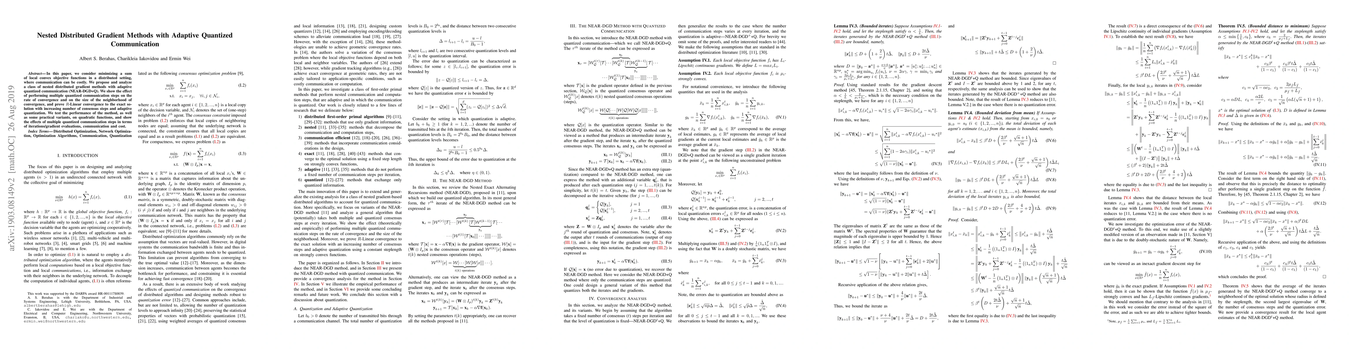 This paper proposes NEAR-DGD+Q, a nested distributed gradient method with adaptive quantized communication for minimizing local convex objectives in distributed settings. It demonstrates R-Linear convergence and analyzes the impact of multiple quantized communication steps on convergence rate and neighborhood size.