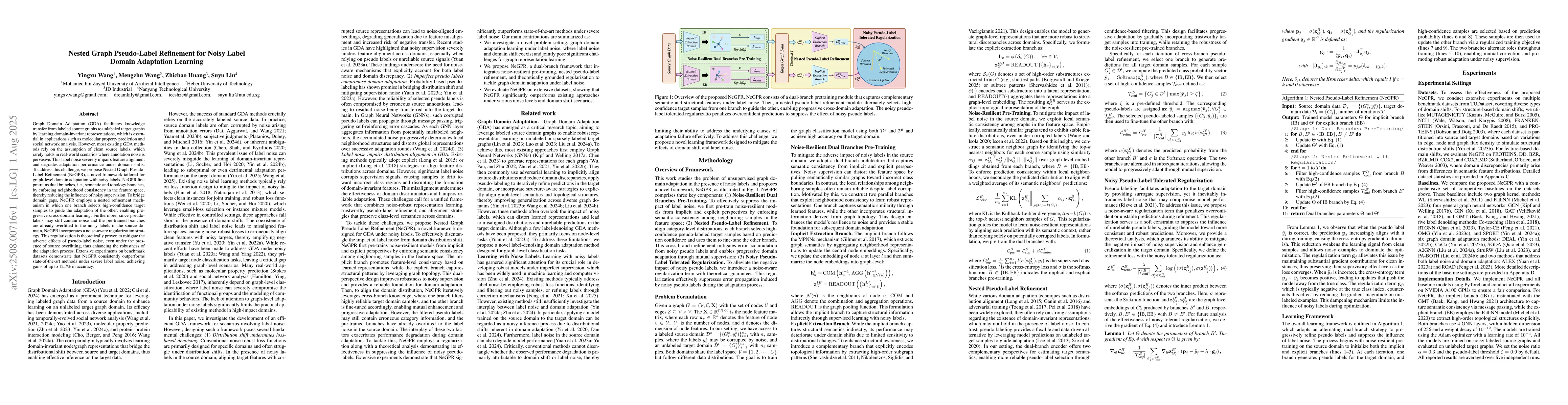 Graph Domain Adaptation (GDA) facilitates knowledge transfer from labeled source graphs to unlabeled target graphs by learning domain-invariant representations, which is essential in applications such as molecular property prediction and social network analysis. However, most existing GDA methods rely on the assumption of clean source labels, which rarely holds in real-world scenarios where annotation noise is pervasive. This label noise severely impairs feature alignment and degrades adaptation performance under domain shifts. To address this challenge, we propose Nested Graph Pseudo-Label Refinement (NeGPR), a novel framework tailored for graph-level domain adaptation with noisy labels. NeGPR first pretrains dual branches, i.e., semantic and topology branches, by enforcing neighborhood consistency in the feature space, thereby reducing the influence of noisy supervision. To bridge domain gaps, NeGPR employs a nested refinement mechanism in which one branch selects high-confidence target samples to guide the adaptation of the other, enabling progressive cross-domain learning. Furthermore, since pseudo-labels may still contain noise and the pre-trained branches are already overfitted to the noisy labels in the source domain, NeGPR incorporates a noise-aware regularization strategy. This regularization is theoretically proven to mitigate the adverse effects of pseudo-label noise, even under the presence of source overfitting, thus enhancing the robustness of the adaptation process. Extensive experiments on benchmark datasets demonstrate that NeGPR consistently outperforms state-of-the-art methods under severe label noise, achieving gains of up to 12.7% in accuracy.