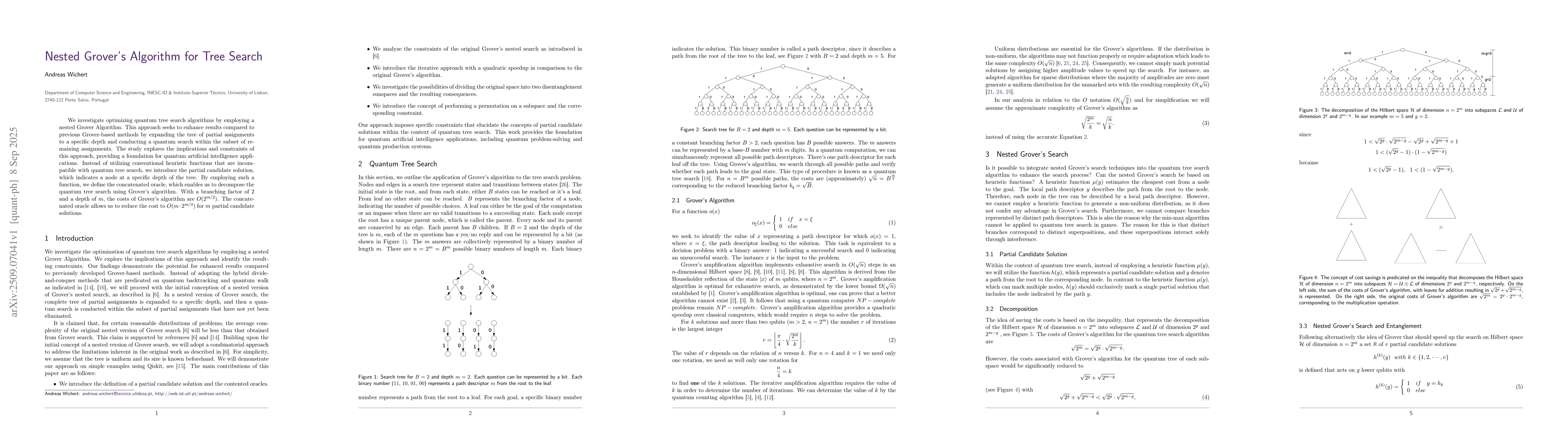 We investigate optimizing quantum tree search algorithms by employing a nested Grover Algorithm. This approach seeks to enhance results compared to previous Grover-based methods by expanding the tree of partial assignments to a specific depth and conducting a quantum search within the subset of remaining assignments. The study explores the implications and constraints of this approach, providing a foundation for quantum artificial intelligence applications. Instead of utilizing conventional heuristic functions that are incompatible with quantum tree search, we introduce the partial candidate solution, which indicates a node at a specific depth of the tree. By employing such a function, we define the concatenated oracle, which enables us to decompose the quantum tree search using Grover algorithm.