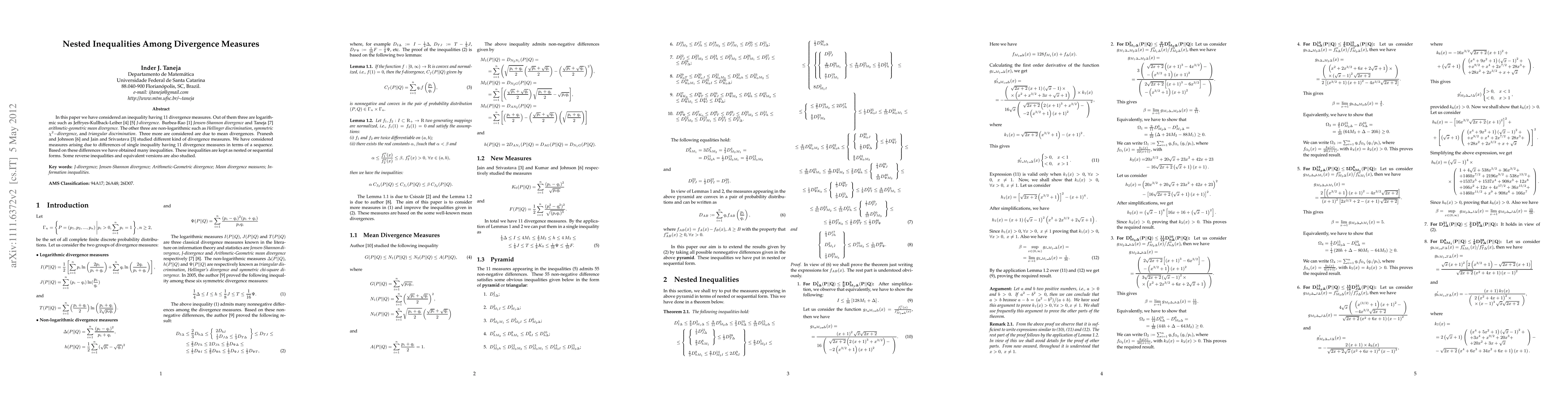 This paper explores a single inequality involving 11 well-known divergence measures from Information theory and Statistics, including J-divergence and Jensen-Shannon divergence. The study organizes over 40 divergence measures into a nested sequence based on the inequality, introducing the concept of reverse inequalities.