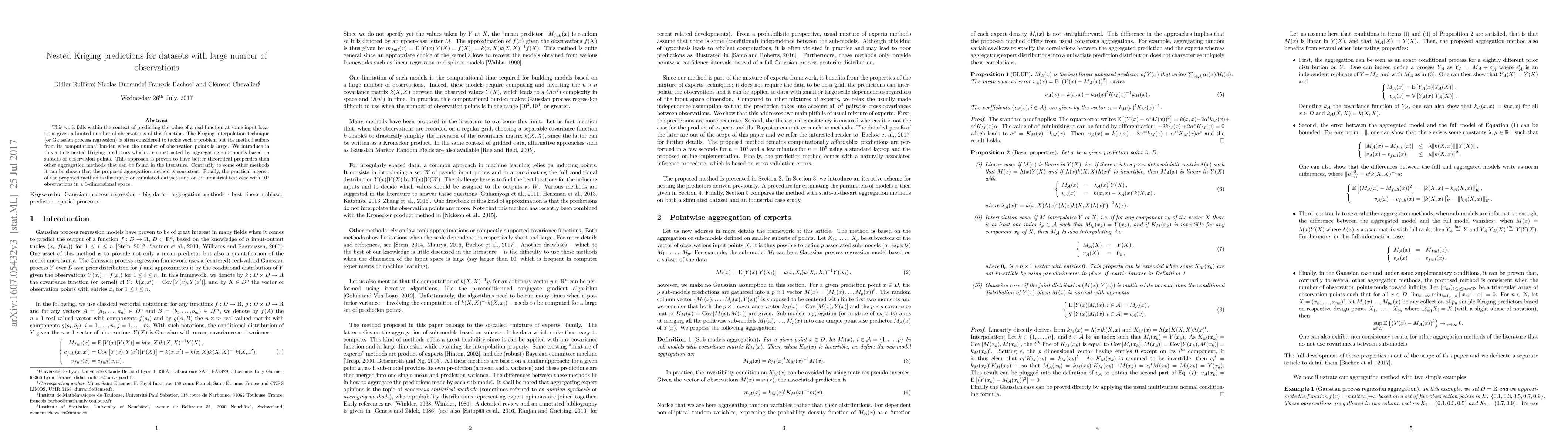 This work falls within the context of predicting the value of a real function at some input locations given a limited number of observations of this function. The Kriging interpolation technique (or Gaussian process regression) is often considered to tackle such a problem but the method suffers from its computational burden when the number of observation points is large. We introduce in this article nested Kriging predictors which are constructed by aggregating sub-models based on subsets of observation points. This approach is proven to have better theoretical properties than other aggregation methods that can be found in the literature. Contrarily to some other methods it can be shown that the proposed aggregation method is consistent. Finally, the practical interest of the proposed method is illustrated on simulated datasets and on an industrial test case with $10^4$ observations in a 6-dimensional space.