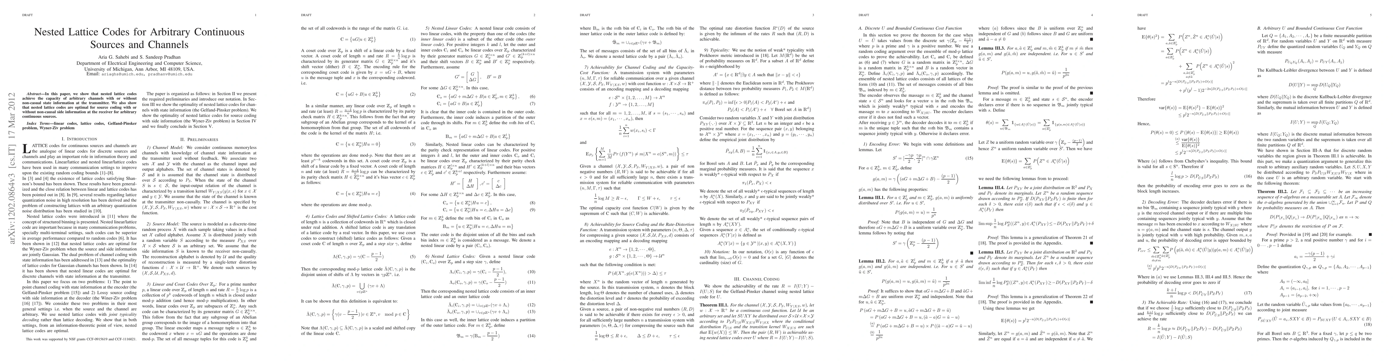 Summary: This paper demonstrates that nested lattice codes can achieve the capacity of any channel, leveraging non-causal state information, and are optimal for source coding with or without non-causal side information for continuous sources.