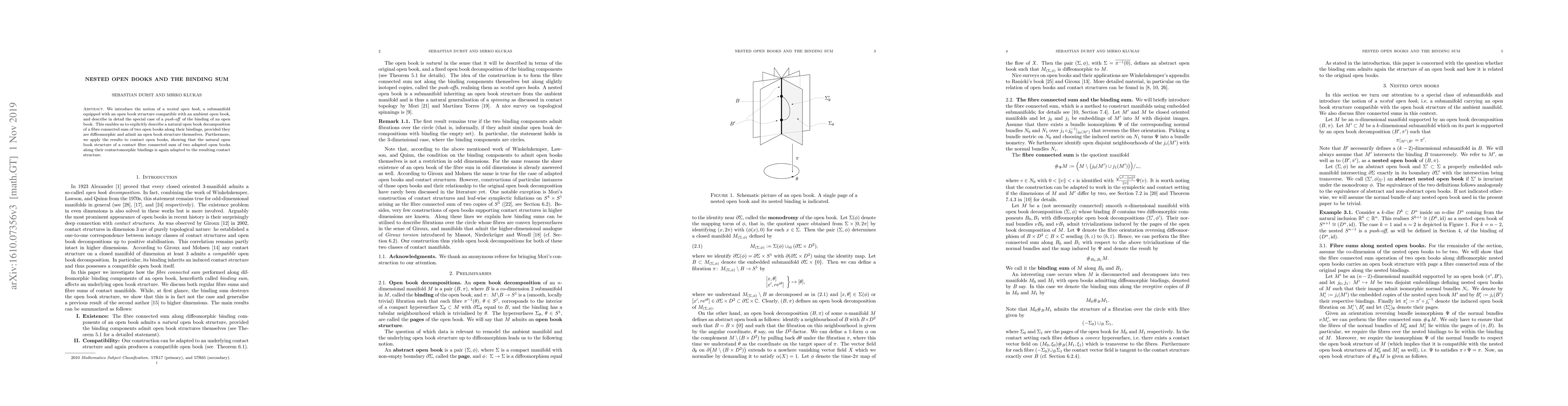 We introduce the notion of a nested open book, a submanifold equipped with an open book structure compatible with an ambient open book, and describe in detail the special case of a push-off of the binding of an open book. This enables us to explicitly describe a natural open book decomposition of a fibre connected sum of two open books along their bindings, provided they are diffeomorphic and admit an open book structure themselves. Furthermore, we apply the results to contact open books, showing that the natural open book structure of a contact fibre connected sum of two adapted open books along their contactomorphic bindings is again adapted to the resulting contact structure.