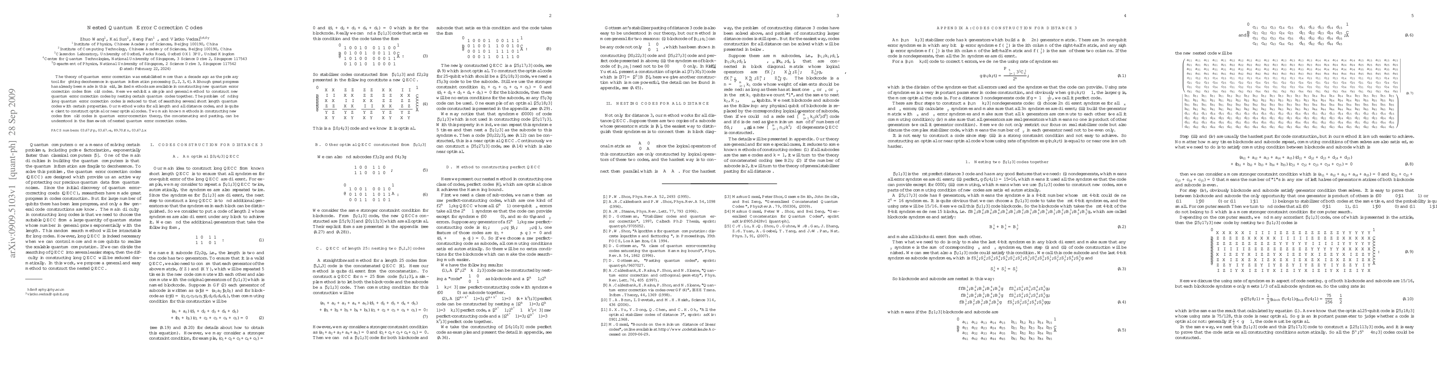 This paper proposes a new method for constructing nested quantum error correction codes by combining existing codes, which simplifies the process of creating long codes and is efficient for both optimal and near-optimal outcomes. The technique encompasses all lengths and distances, and relates to existing concatenation and pasting methods.