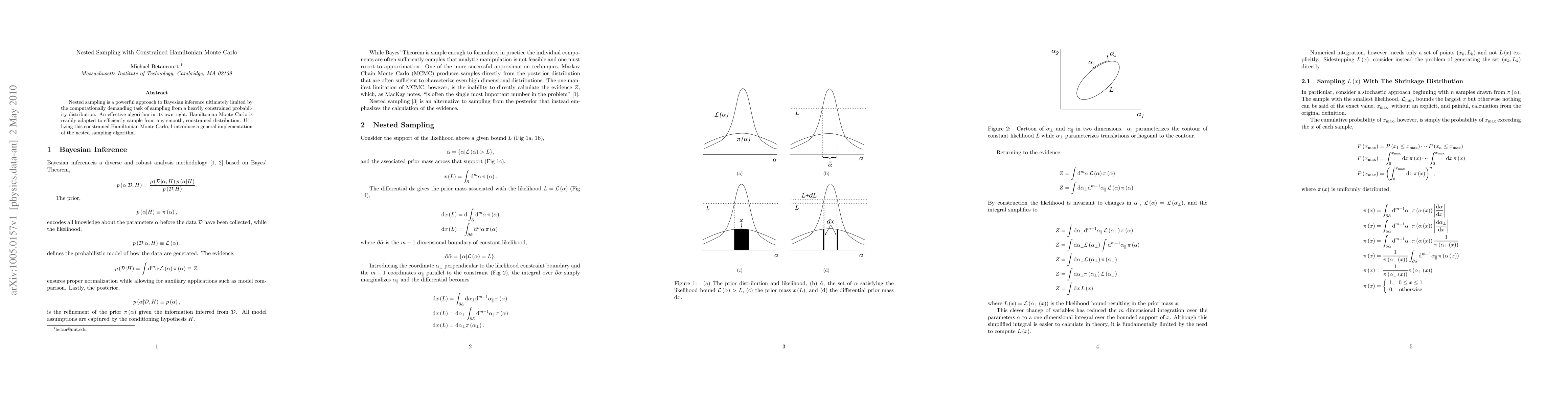 This paper presents a novel implementation of the nested sampling algorithm that leverages constrained Hamiltonian Monte Carlo to efficiently sample from heavily constrained probability distributions, thereby enhancing the efficiency and applicability of Bayesian inference.