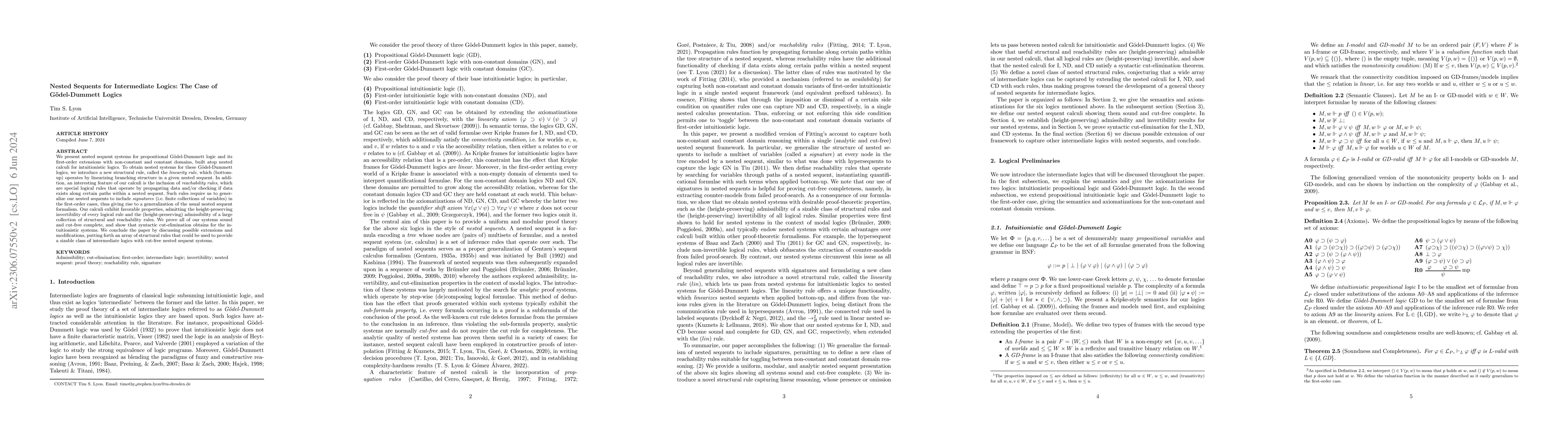 This work provides a unified framework for propositional and first-order intuitionistic and Gödel-Dummett logics, facilitating the development of a general nested proof theory for intermediate logics.