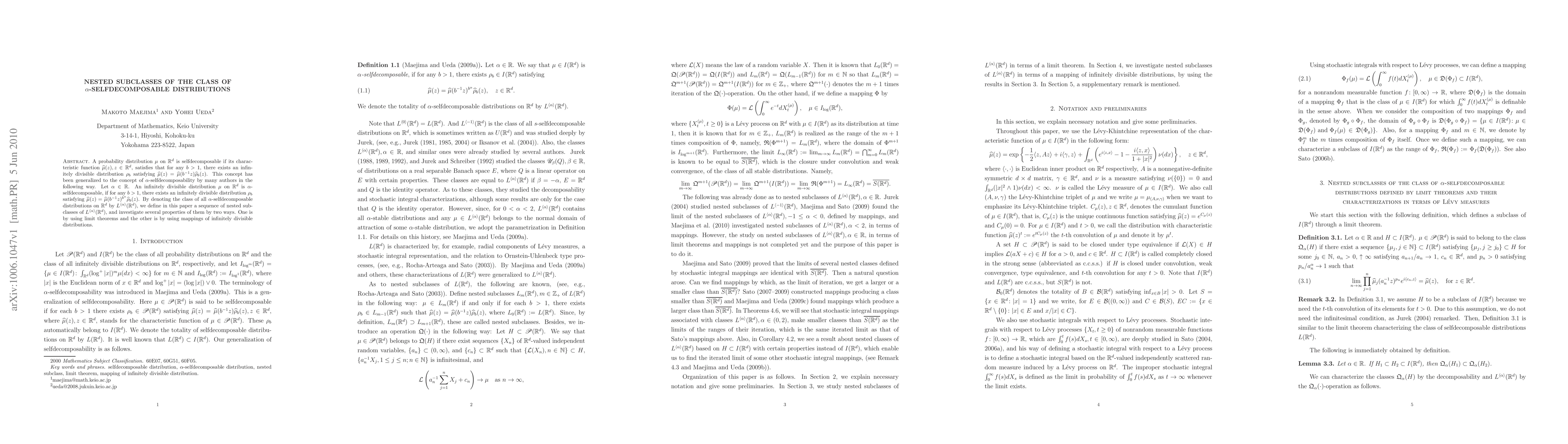 This paper explores nested subclasses of $\alpha$-selfdecomposable distributions, defined by a modified decomposition of their characteristic functions. It investigates properties of these subclasses through limit theorems and mappings of infinitely divisible distributions.