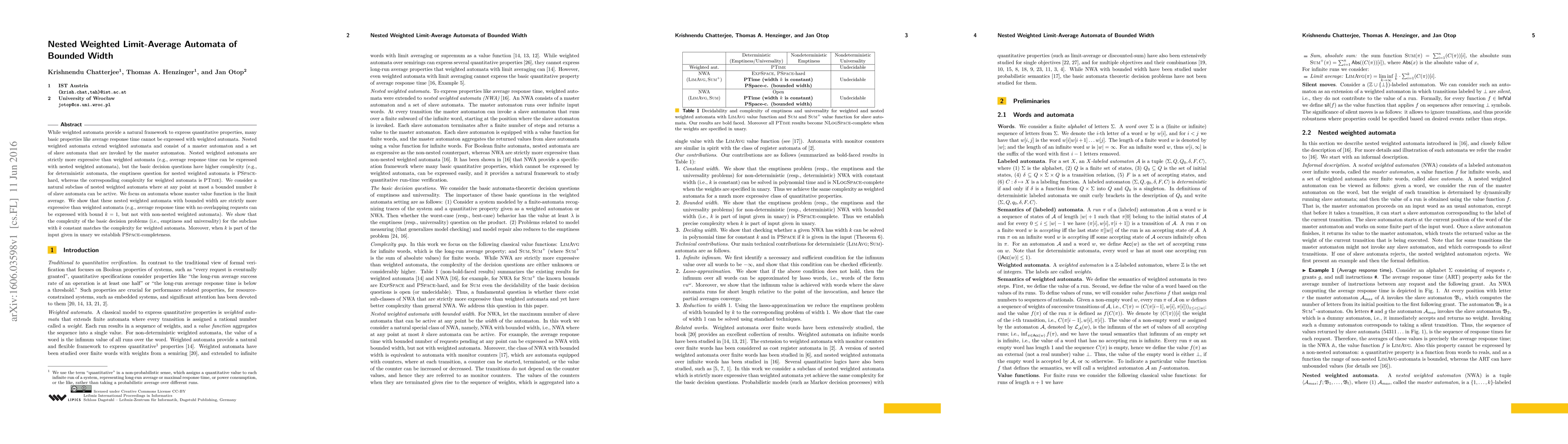 This paper introduces nested weighted limit-average automata of bounded width, demonstrating their enhanced expressive power over standard weighted automata for expressing average response times, while maintaining the same complexity for basic decision problems when the bound is constant. PSPACE-completeness is established when the bound is provided in unary.