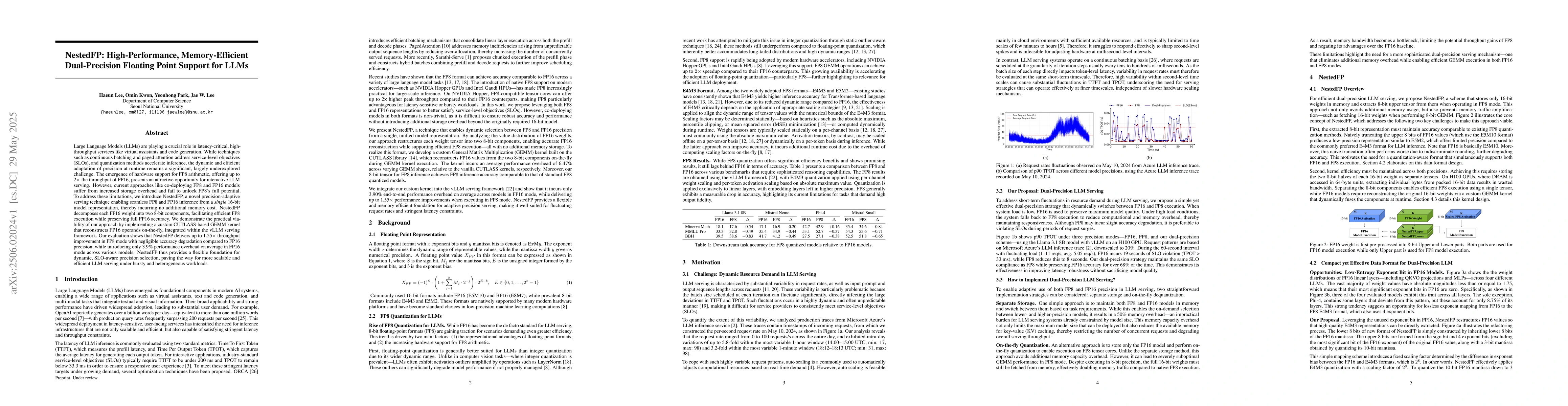 NestedFP is a technique that enables seamless FP8 and FP16 inference from a single 16-bit model representation with no additional memory cost, achieving up to 1.55x throughput improvement in FP8 mode.