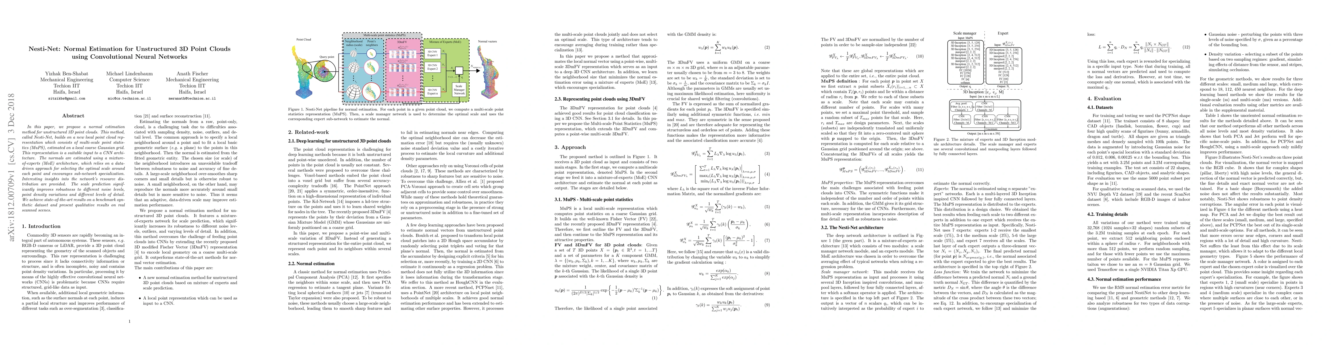 Nesti-Net introduces a novel normal estimation method for unstructured 3D point clouds using a CNN architecture, leveraging multi-scale point statistics on a local coarse Gaussian grid. The method employs a mixture-of-experts architecture for robust normal estimation, achieving state-of-the-art results on synthetic datasets and demonstrating effectiveness on real scans.
