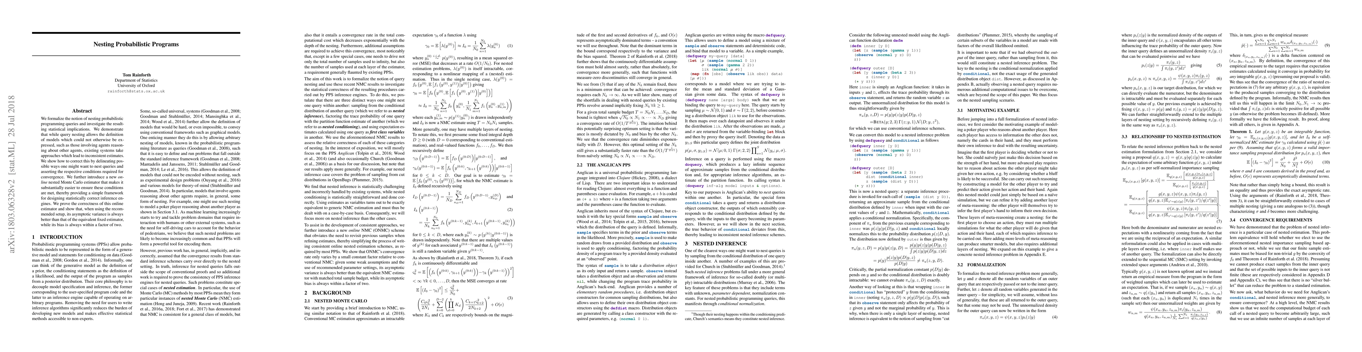 This paper formalizes the nesting of probabilistic programming queries and addresses the statistical inconsistencies that arise. It introduces a new online nested Monte Carlo estimator to ensure convergence and correct estimates, proving its asymptotic variance superiority and bounded bias.