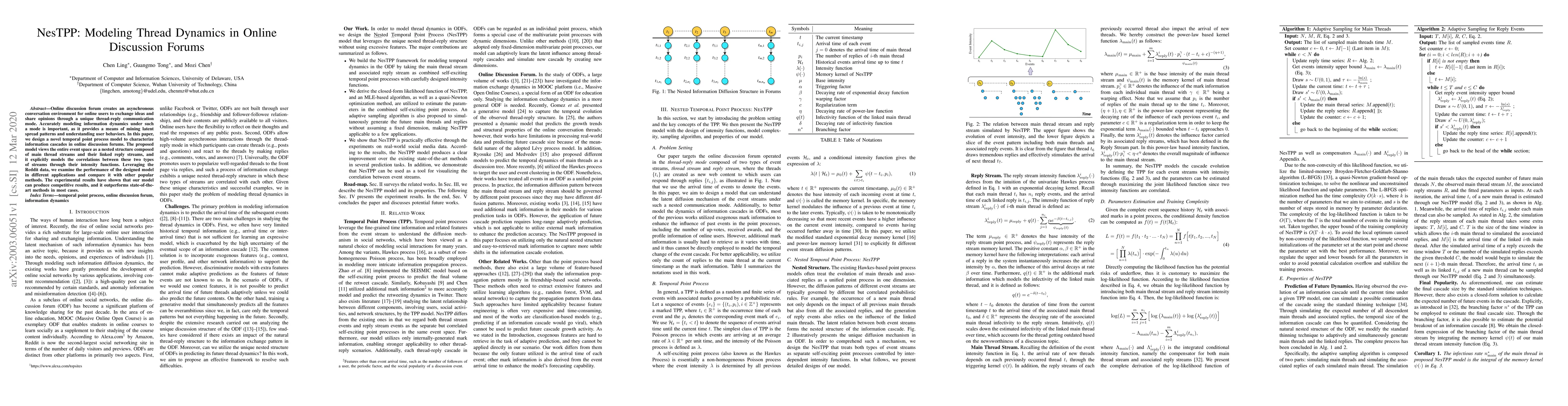 This paper introduces NesTPP, a novel temporal point process model to characterize information dynamics in online discussion forums, capturing the nested structure of main threads and their reply streams. Experimental results show that NesTPP outperforms other methods, providing better insights into information cascades and user behaviors.