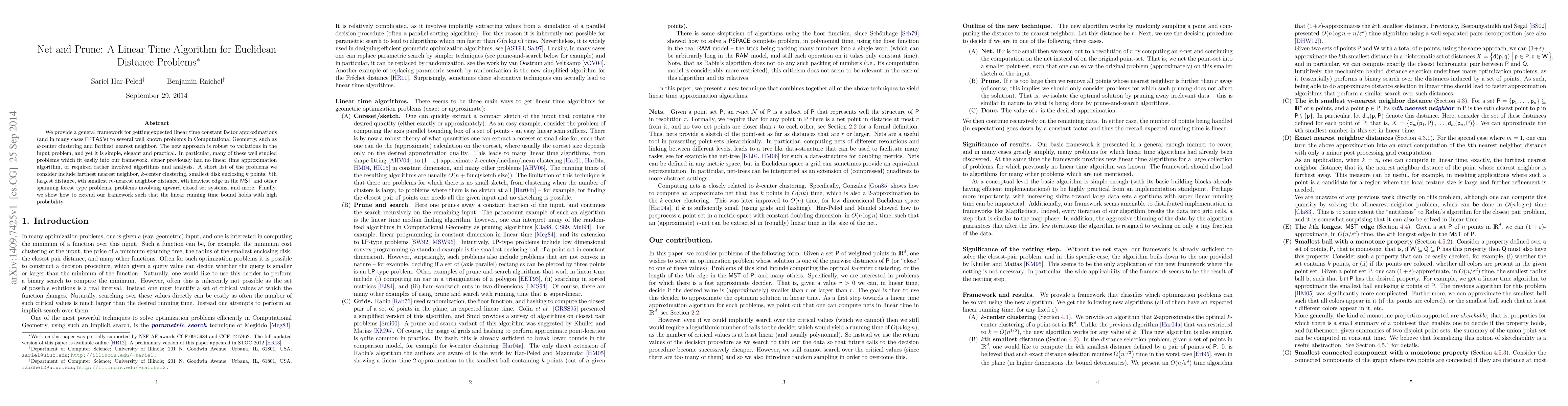 This paper presents a linear time algorithm framework called Net and Prune for achieving constant factor approximations to various computational geometry problems, including $k$-center clustering and farthest nearest neighbor. The approach is both simple and effective, often providing solutions where previous methods were either non-existent or overly complex.