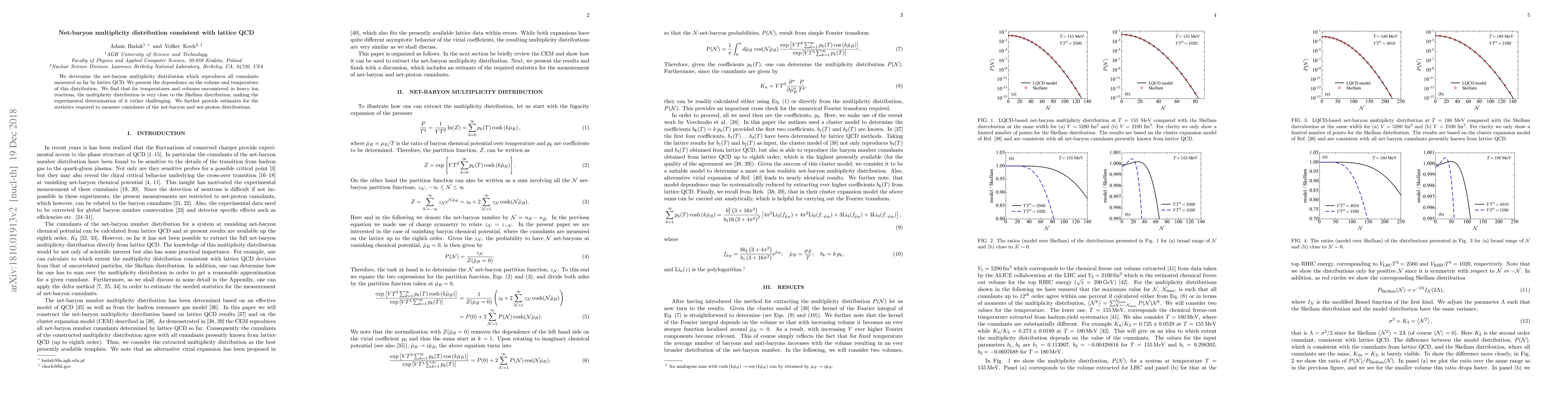 We determine the net-baryon multiplicity distribution which reproduces all cumulants measured so far by lattice QCD. We present the dependence on the volume and temperature of this distribution. We find that for temperatures and volumes encountered in heavy ion reactions, the multiplicity distribution is very close to the Skellam distribution, making the experimental determination of it rather challenging. We further provide estimates for the statistics required to measure cumulants of the net-baryon and net-proton distributions.