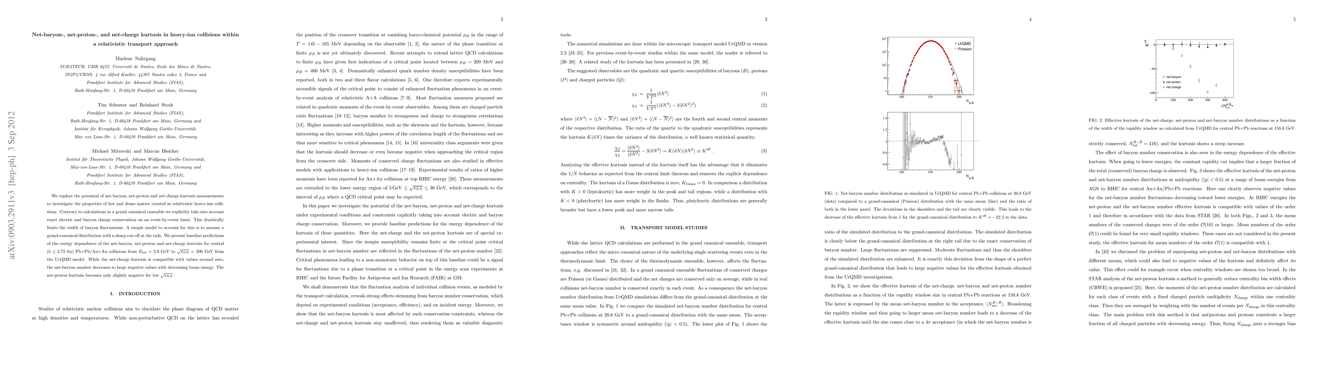 This study investigates the kurtosis of net-baryon, net-proton, and net-charge distributions in heavy-ion collisions using a relativistic transport model that respects exact charge conservation. The findings show significant negative net-baryon kurtosis at lower energies, while net-charge kurtosis remains near zero, providing insights into the properties of hot and dense matter.