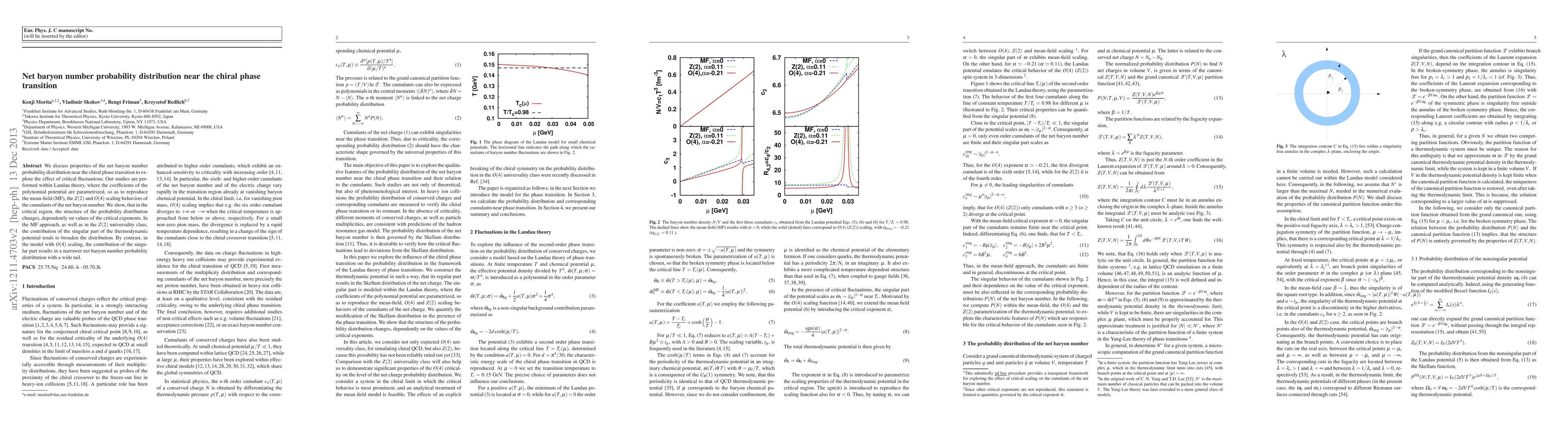 This paper investigates the net baryon number probability distribution near the chiral phase transition, focusing on the impact of critical fluctuations. Using Landau theory, the study reveals that the distribution's structure varies with critical exponents, showing broadening in mean-field and $Z(2)$ approaches, while $O(4)$ scaling leads to a narrower distribution with a wide tail.