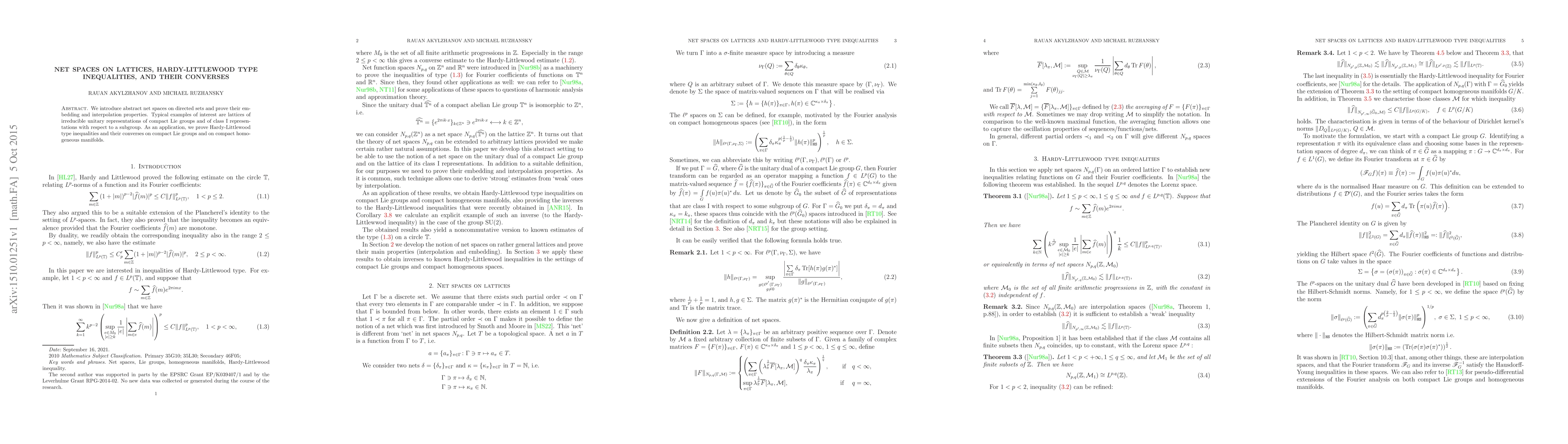 Researchers introduce abstract net spaces on directed sets, proving embedding and interpolation properties with applications to Hardy-Littlewood type inequalities and their converses on compact Lie groups and homogeneous manifolds.