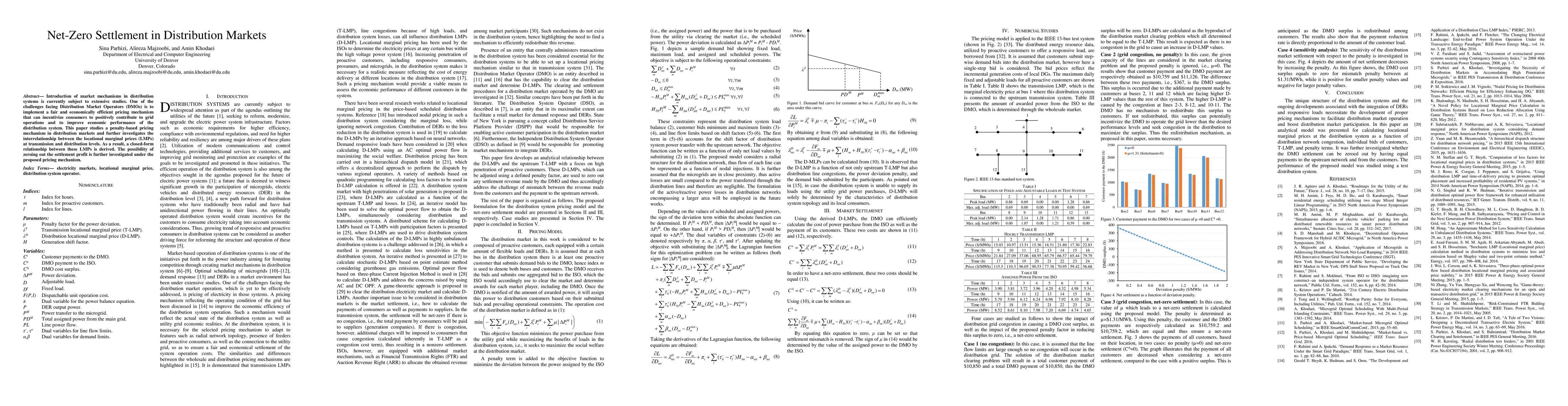 A study investigates a penalty-based pricing mechanism in distribution markets to incentivize consumer contributions and improve grid operations. It finds a closed-form relationship between locational marginal prices at transmission and distribution levels, enabling the possibility of zeroing out settlement profit.