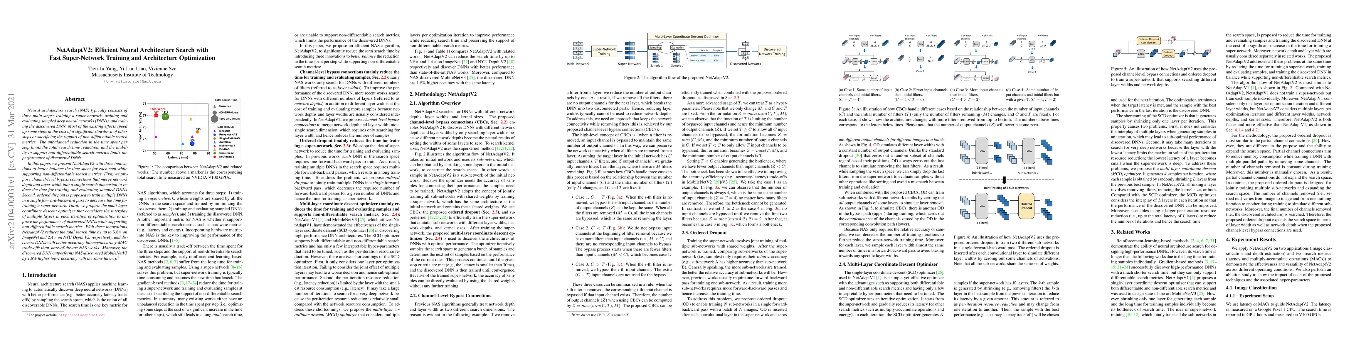 NetAdaptV2 improves neural architecture search by up to 5.8x faster training times and discovering DNNs with better accuracy-latency trade-offs than state-of-the-art NAS works.