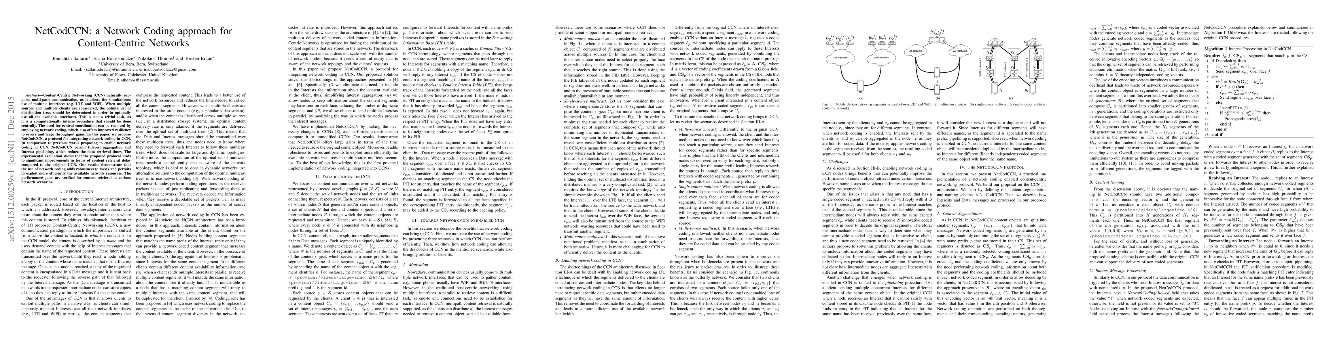 NetCodCCN integrates network coding into Content-Centric Networking to optimize multi-path communication and reduce data retrieval times. Experimental results show significant improvements in content retrieval delay and enhanced network resource efficiency.