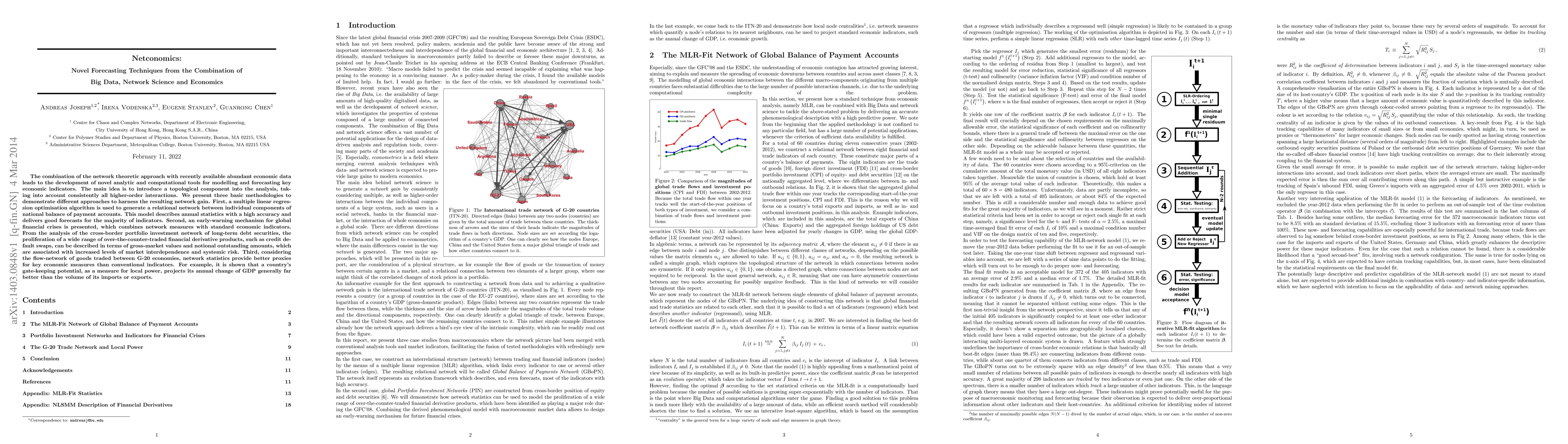 The combination of the network theoretic approach with recently available abundant economic data leads to the development of novel analytic and computational tools for modelling and forecasting key economic indicators. The main idea is to introduce a topological component into the analysis, taking into account consistently all higher-order interactions. We present three basic methodologies to demonstrate different approaches to harness the resulting network gain. First, a multiple linear regression optimisation algorithm is used to generate a relational network between individual components of national balance of payment accounts. This model describes annual statistics with a high accuracy and delivers good forecasts for the majority of indicators. Second, an early-warning mechanism for global financial crises is presented, which combines network measures with standard economic indicators. From the analysis of the cross-border portfolio investment network of long-term debt securities, the proliferation of a wide range of over-the-counter-traded financial derivative products, such as credit default swaps, can be described in terms of gross-market values and notional outstanding amounts, which are associated with increased levels of market interdependence and systemic risk. Third, considering the flow-network of goods traded between G-20 economies, network statistics provide better proxies for key economic measures than conventional indicators. For example, it is shown that a country's gate-keeping potential, as a measure for local power, projects its annual change of GDP generally far better than the volume of its imports or exports.