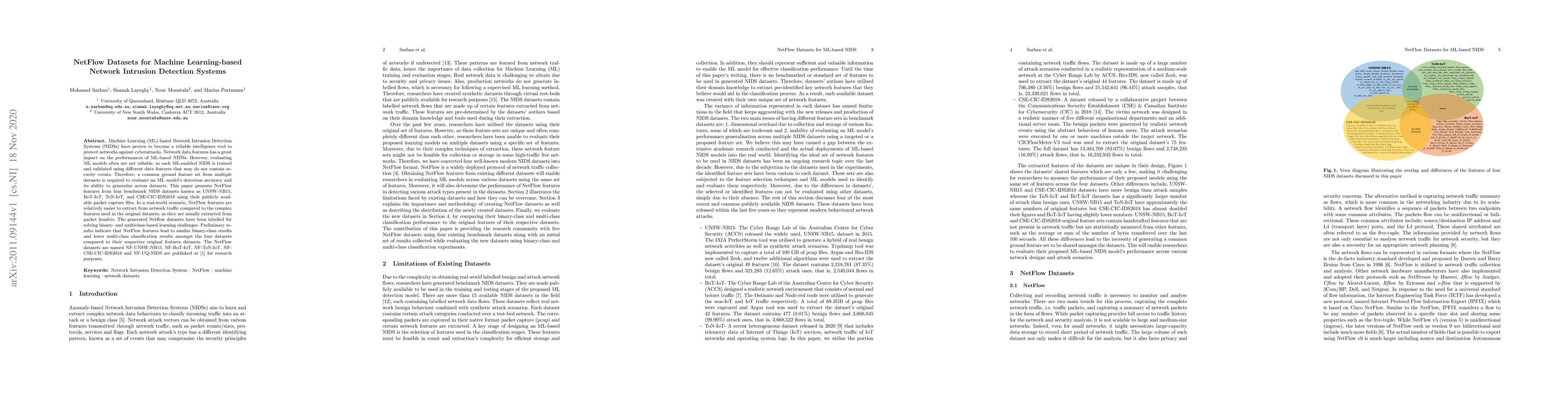 This paper introduces NetFlow feature datasets derived from four benchmark NIDS datasets to evaluate machine learning models' detection accuracy. The NetFlow datasets, named NF-UNSW-NB15, NF-BoT-IoT, NF-ToN-IoT, and NF-CSE-CIC-IDS2018, aim to provide a common ground for model evaluation, showing similar binary-class results but lower multi-class performance compared to original datasets.