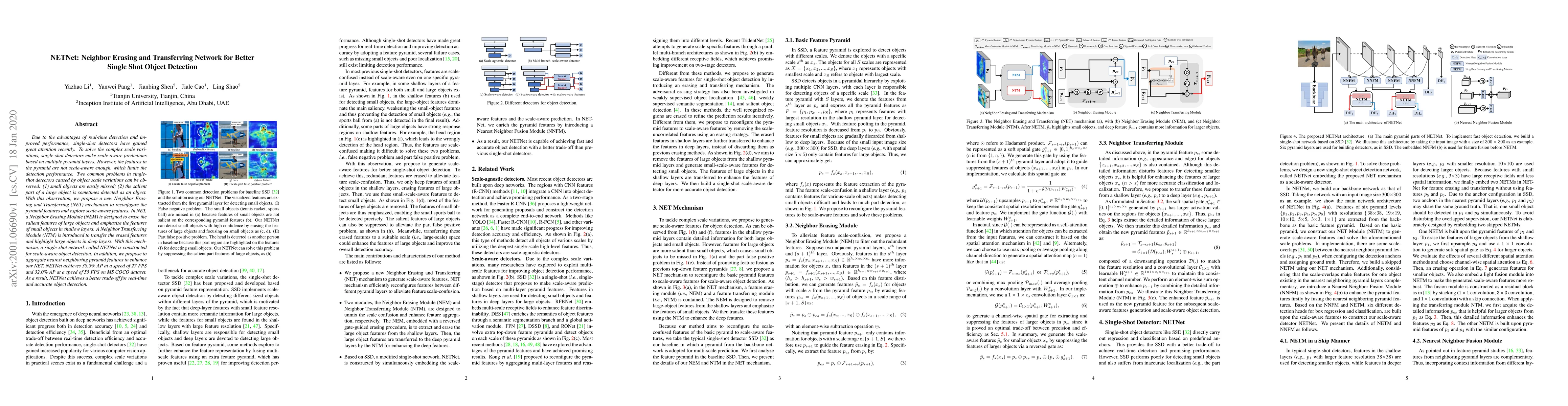 NETNet introduces a Neighbor Erasing and Transferring mechanism to enhance single-shot object detectors by addressing scale variations, achieving improved accuracy and real-time detection speeds on the MS COCO dataset. The proposed NETNet network reconfigures pyramid features to better detect both small and large objects.