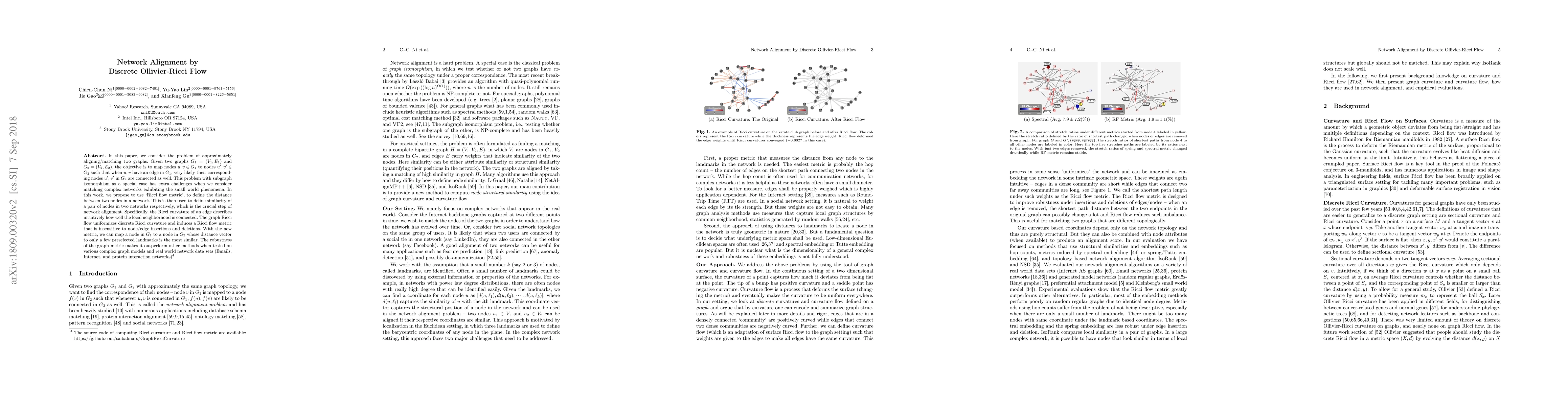 This paper proposes a new method for network alignment using Ricci flow metric, which aligns nodes in complex networks based on their local neighborhood connectivity, outperforming other methods on various real-world datasets.