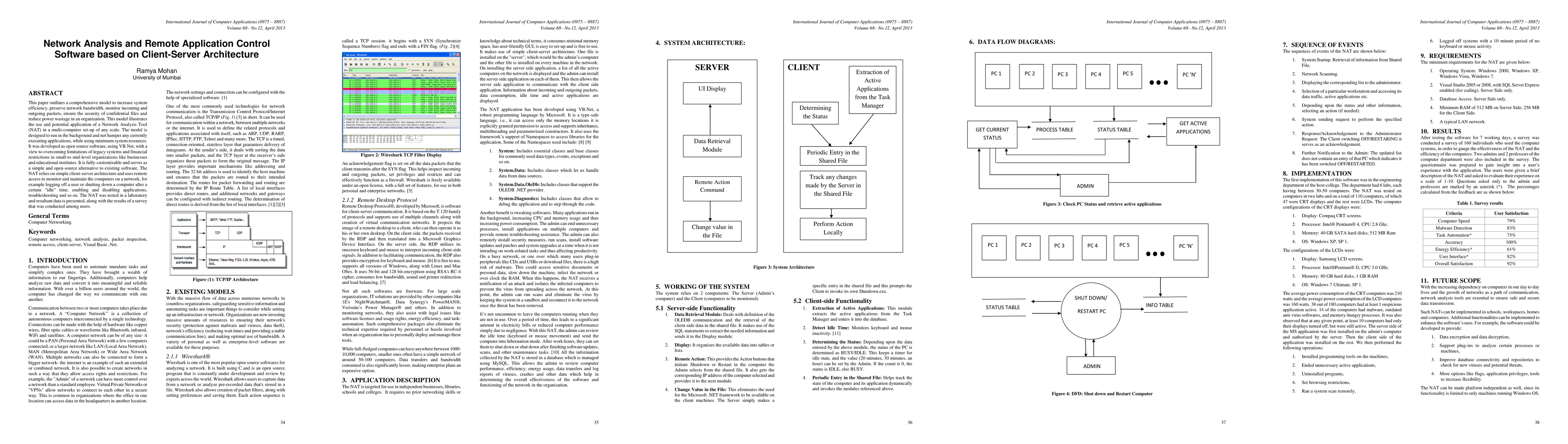 This paper presents a client-server architecture-based Network Analysis Tool (NAT) to enhance system efficiency, secure confidential files, and reduce power wastage in organizations using minimal resources. The open-source VB. Net software is customizable and tested in a lab, showing its effectiveness in network monitoring and application control.