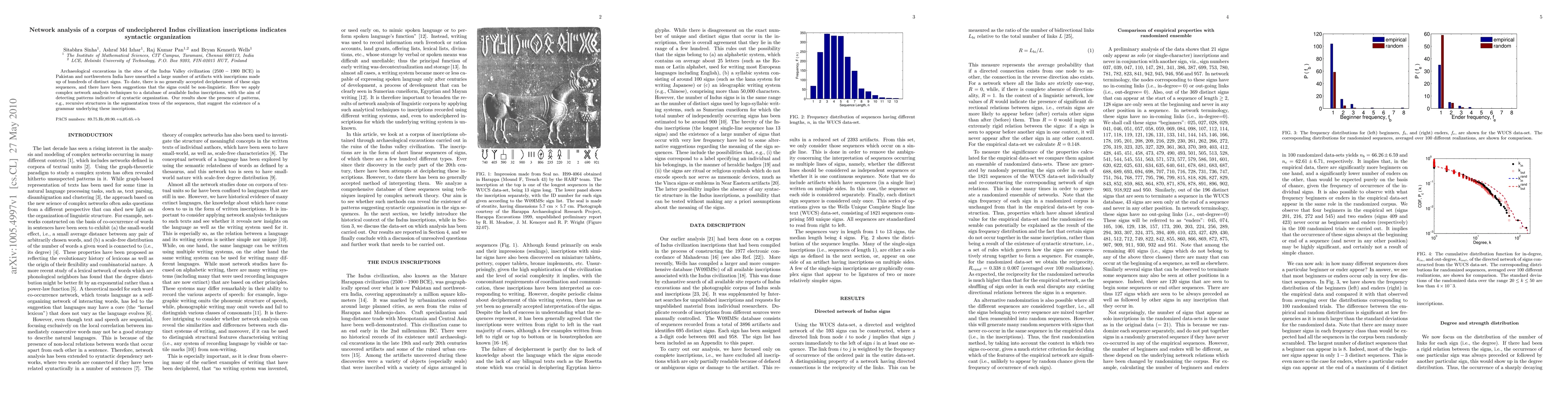 This research uses network analysis on Indus Valley Civilization inscriptions, revealing recursive structures suggesting an underlying grammar, hinting at linguistic organization rather than mere non-linguistic markings.