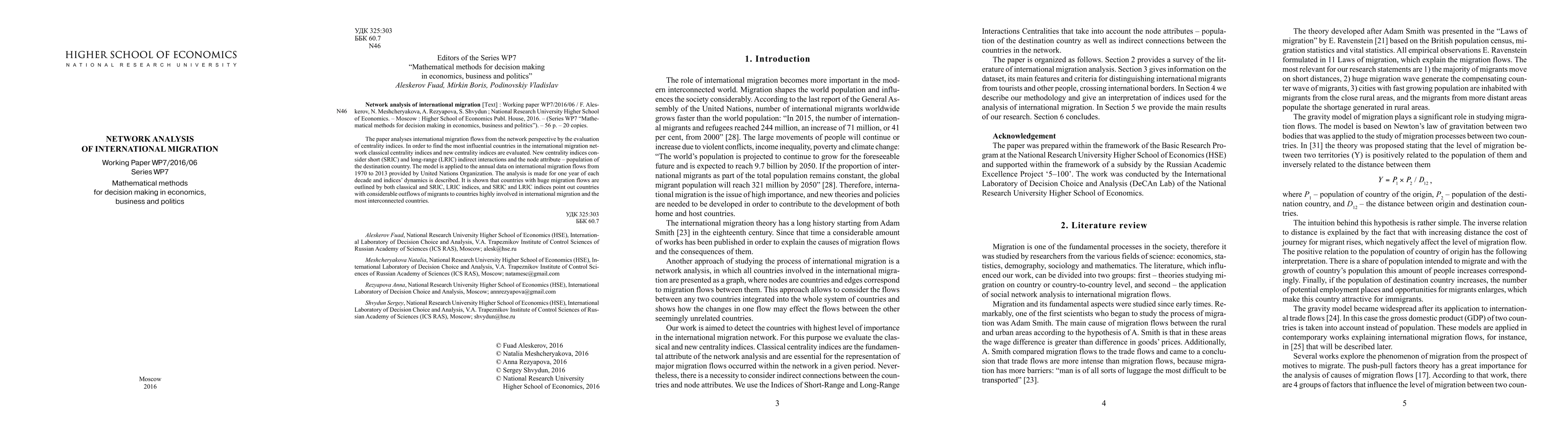 This paper employs network analysis to evaluate international migration flows using centrality indices, including classical, short-range indirect (SRIC), and long-range indirect (LRIC) interactions, alongside population attributes. The study analyzes UN data from 1970 to 2013, highlighting influential countries and the dynamics of migration networks over decades.