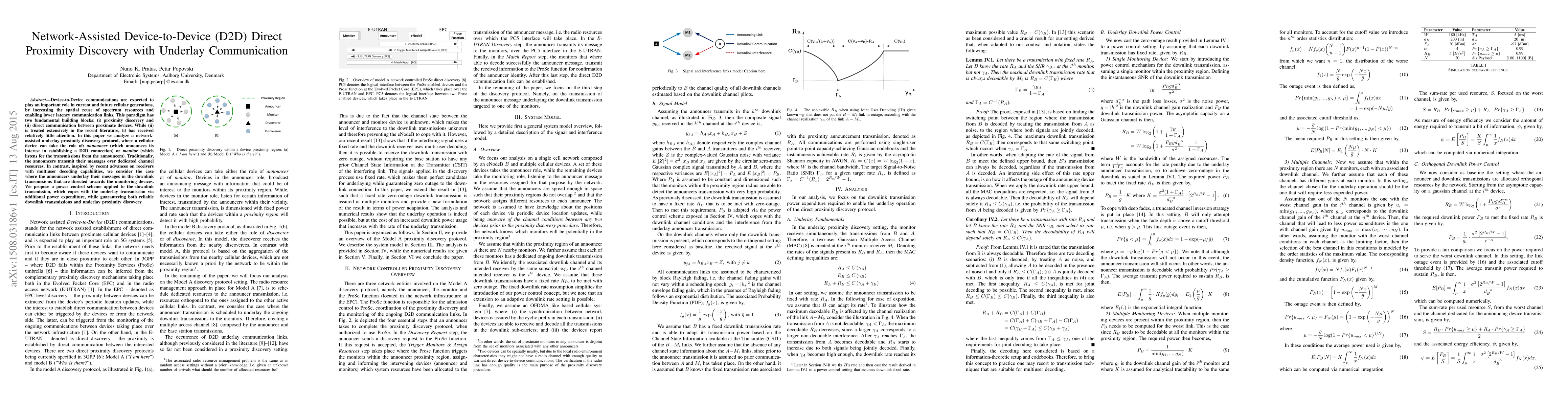 Developed a novel analytical framework for evaluating the performance of proximity discovery in underlay settings.