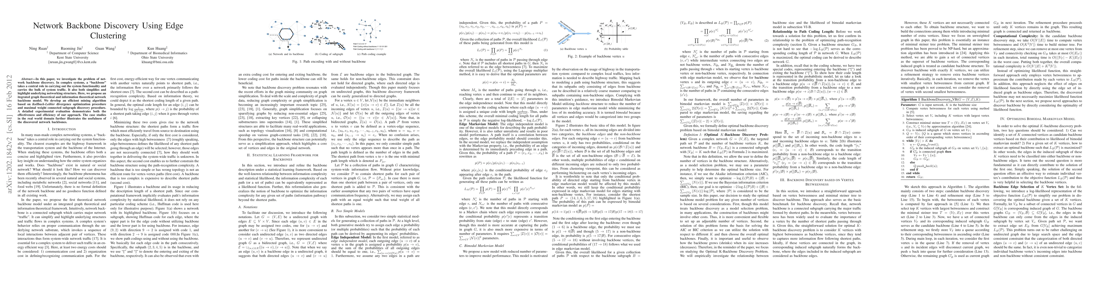 In this paper, we investigate the problem of network backbone discovery. In complex systems, a "backbone" takes a central role in carrying out the system functionality and carries the bulk of system traffic. It also both simplifies and highlight underlying networking structure. Here, we propose an integrated graph theoretical and information theoretical network backbone model. We develop an efficient mining algorithm based on Kullback-Leibler divergence optimization procedure and maximal weight connected subgraph discovery procedure. A detailed experimental evaluation demonstrates both the effectiveness and efficiency of our approach. The case studies in the real world domain further illustrates the usefulness of the discovered network backbones.