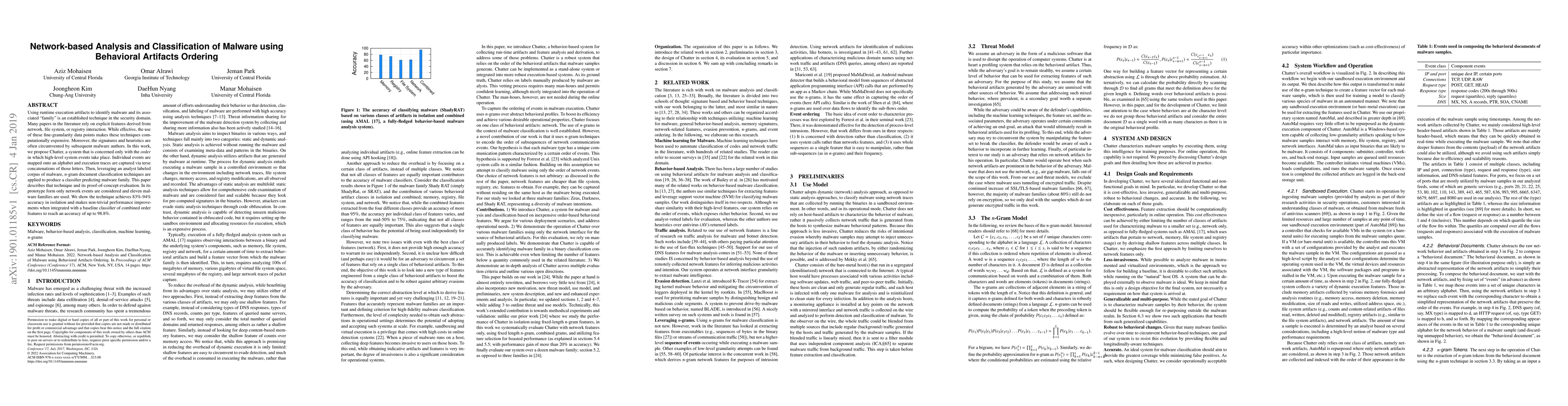 Researchers propose Chatter, a system that analyzes malware by tracking order of high-level system events to predict malware family with 83%-94% accuracy.