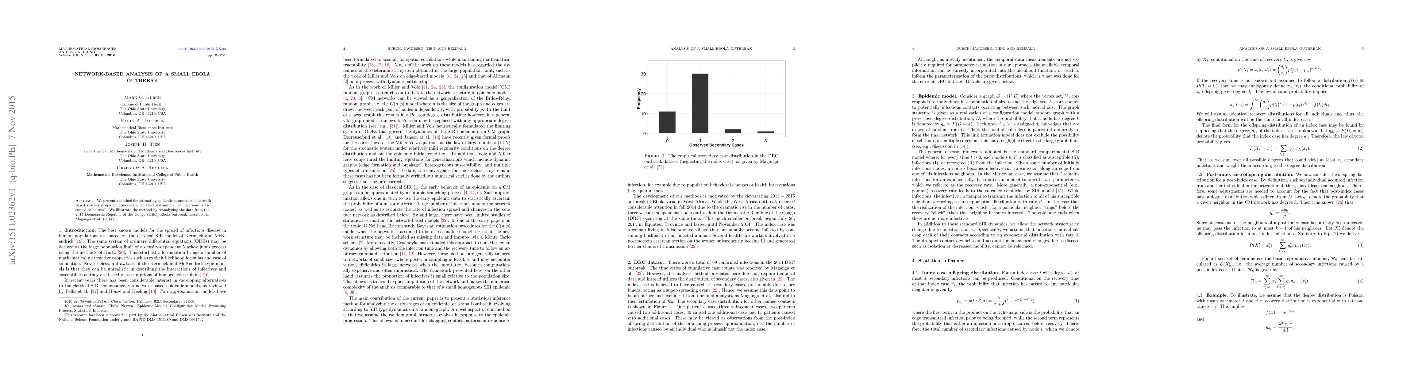 This paper introduces a network-based method for estimating epidemic parameters in small-scale outbreaks, demonstrated through a reanalysis of the 2014 DRC Ebola outbreak data, aiming to improve understanding of such events.