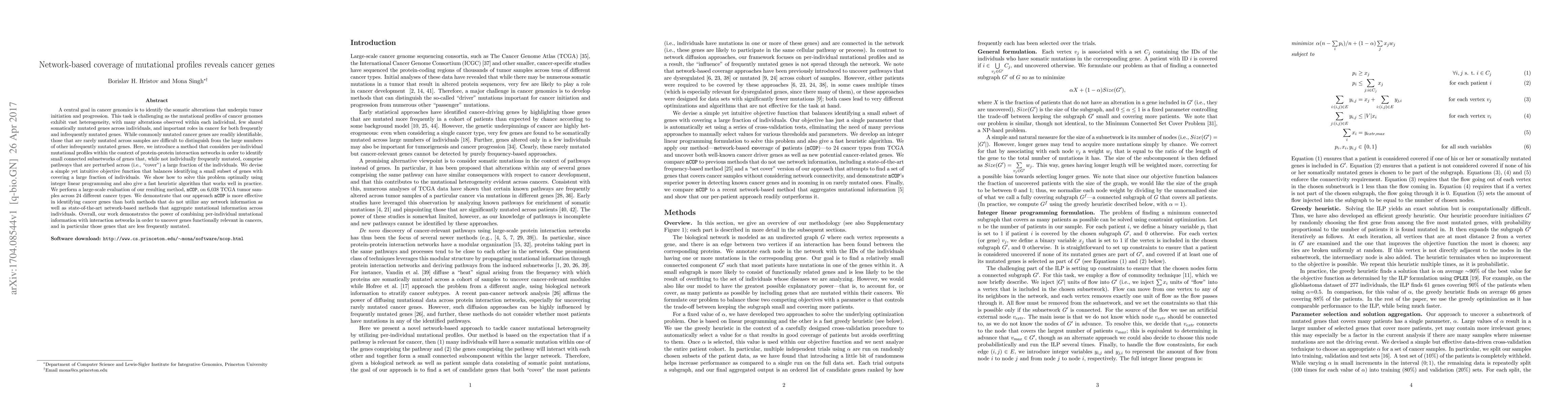 nCOP, an integer linear programming-based method and a fast heuristic algorithm, for identifying cancer genes by integrating individual mutational profiles with protein-protein interaction networks.