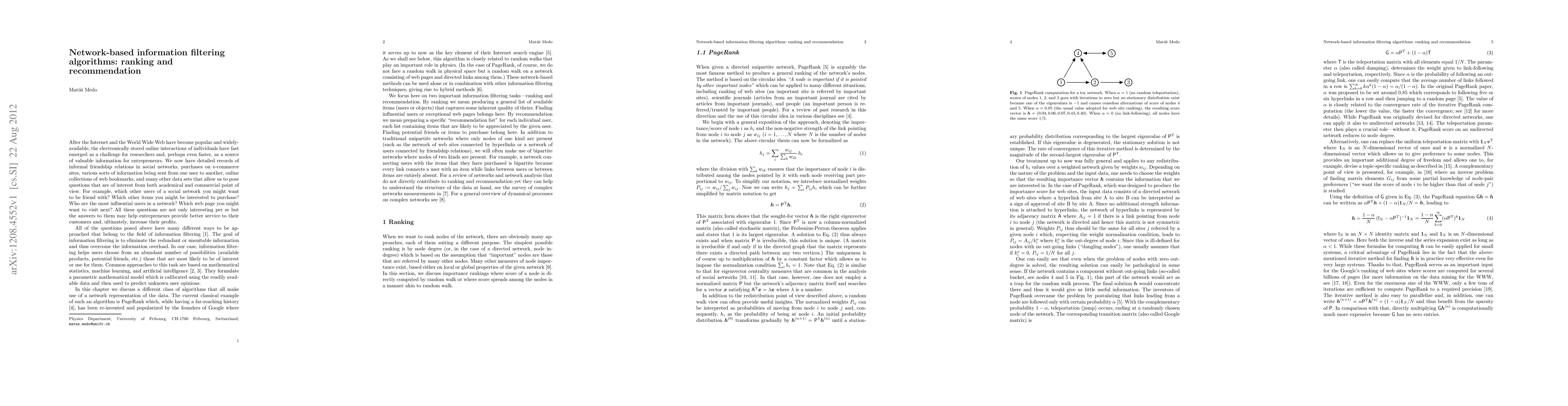This research paper explores network-based information filtering algorithms to rank and recommend content based on user interactions and social networks. It aims to provide valuable insights for entrepreneurs to improve customer service and increase profits.