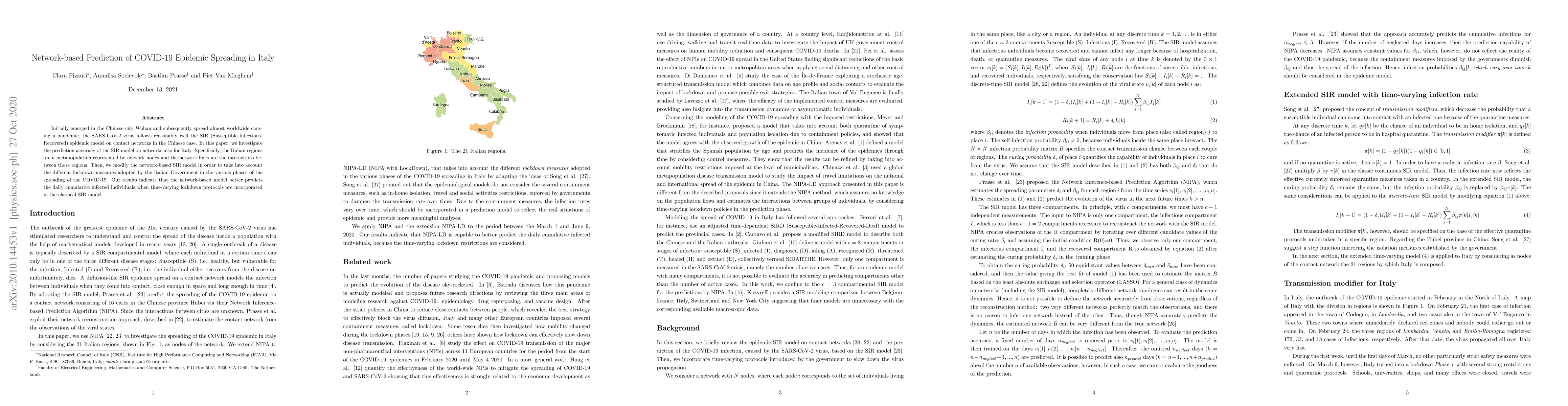 This paper examines the application of a modified SIR epidemic model on contact networks to predict COVID-19 spreading in Italy, considering regional interactions and varying lockdown measures. The results show that the network-based model provides more accurate predictions of daily cumulative infections when incorporating these dynamic restrictions.
