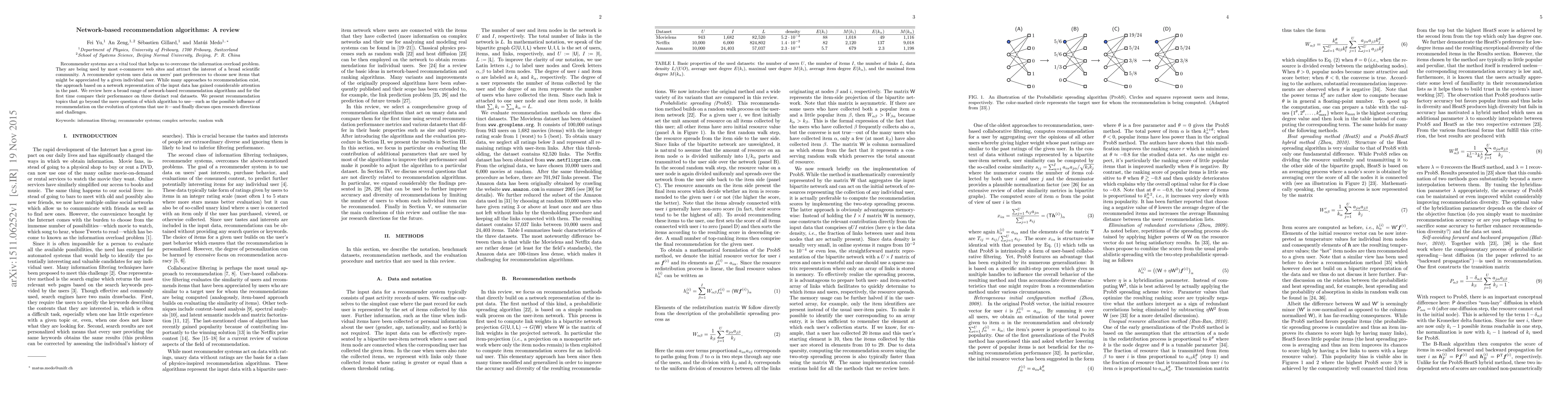 This paper reviews various network-based recommendation algorithms, comparing their performance across three real datasets. It also explores broader implications and future research directions beyond algorithm selection.