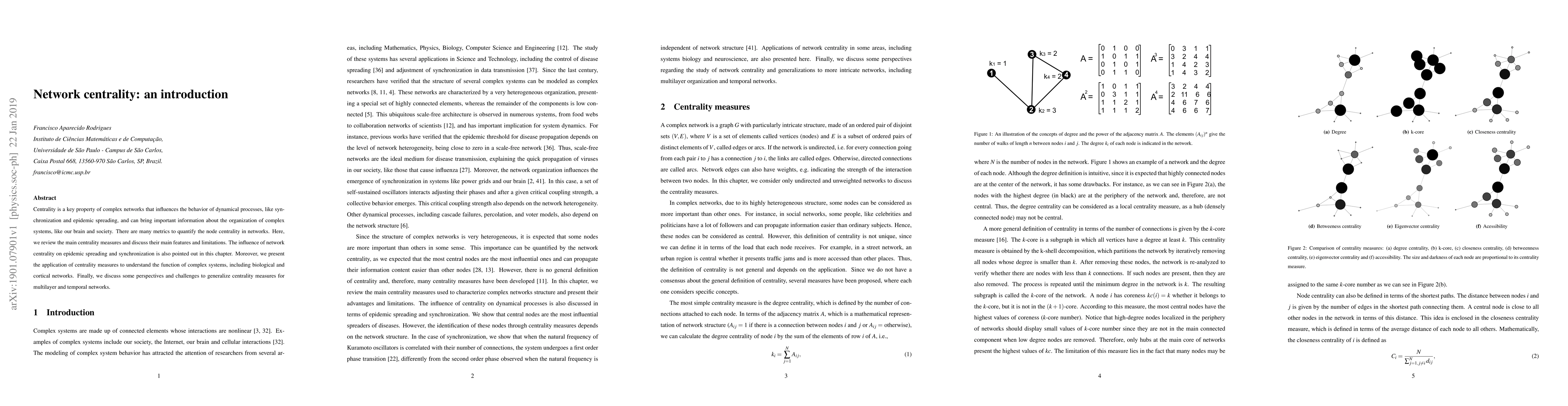 This paper introduces network centrality as a key property of complex networks that influences processes like synchronization and epidemic spreading. It reviews main centrality measures, their features, and limitations, highlighting their application to understand complex systems.