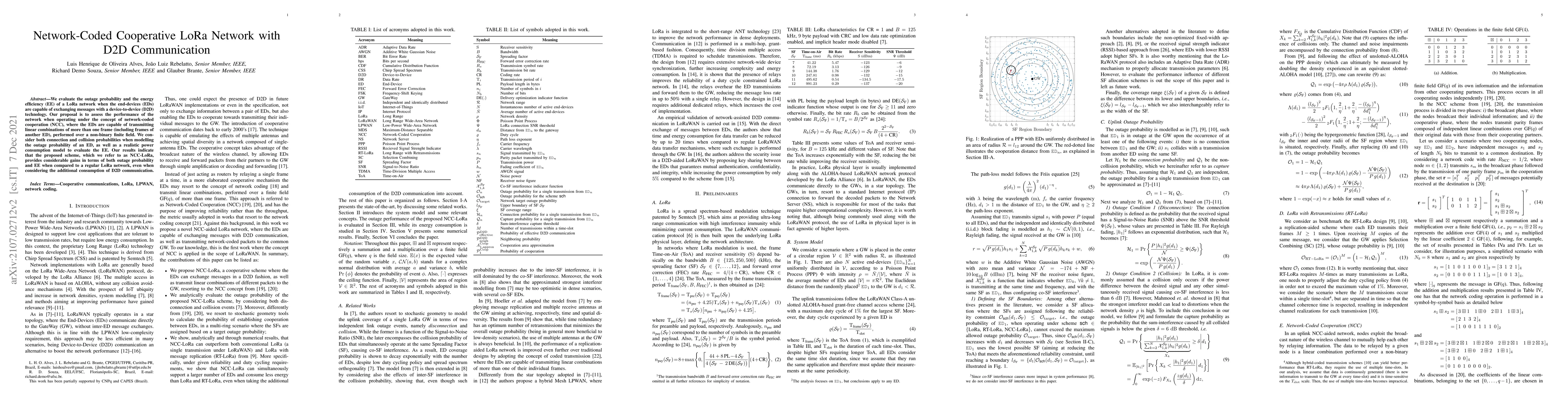 This paper evaluates the outage probability and energy efficiency of a LoRa network enhanced with device-to-device communication and network-coded cooperation. The proposed NCC-LoRa scheme shows significant improvements in both metrics compared to traditional LoRa networks, despite the added D2D communication costs.