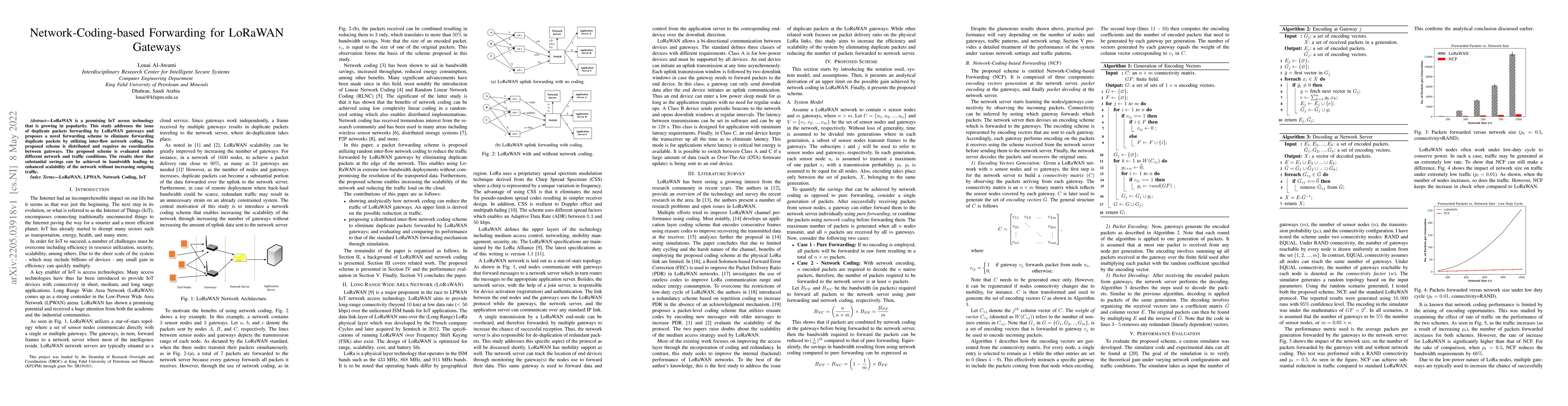 This study proposes a network-coding-based forwarding scheme for LoRaWAN gateways to eliminate duplicate packet forwarding, enhancing network scalability and reducing bandwidth usage without increasing outgoing traffic. The distributed scheme requires no coordination between gateways and was evaluated under various network conditions.